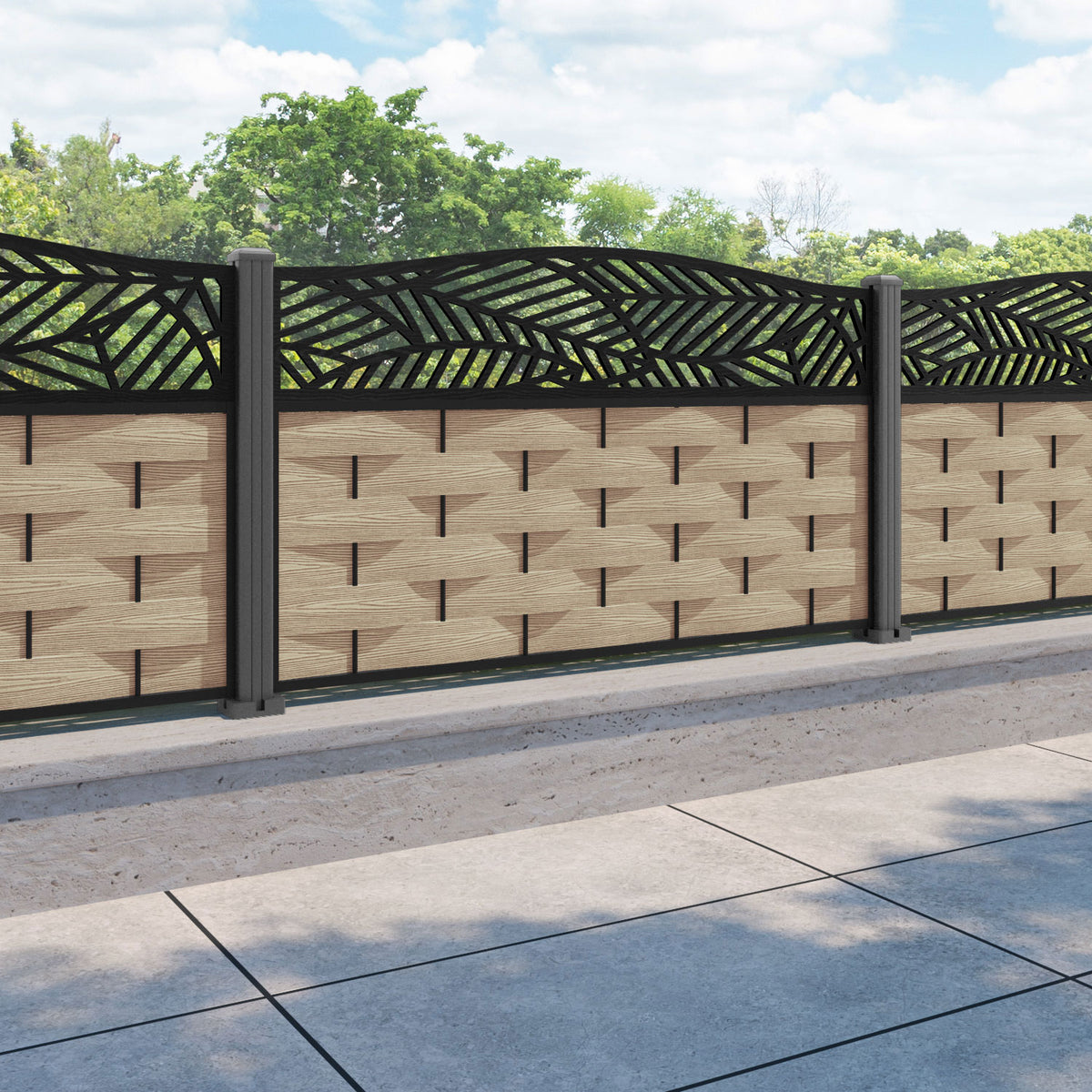 Ripple Habitat Curved Top Fence Panel Light Oak - with our aluminium posts