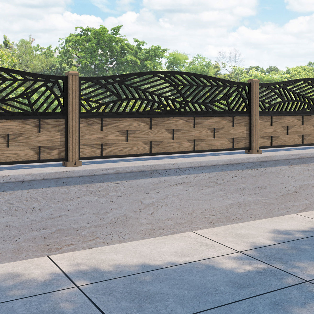 Ripple Habitat Curved Top Fence Panel Teak - with our composite posts