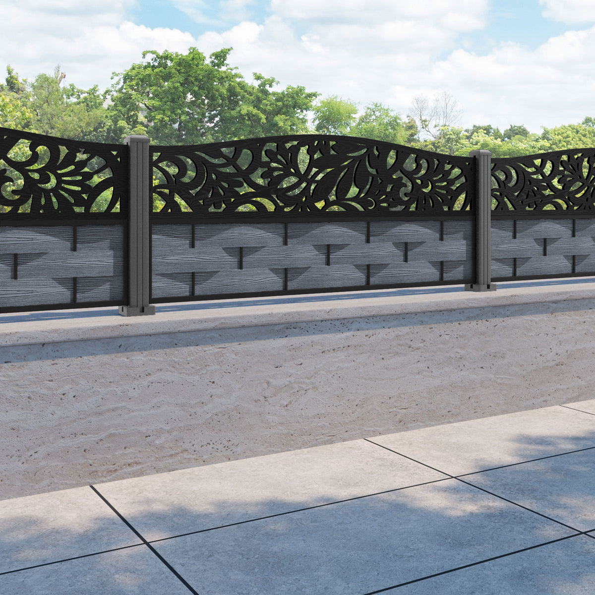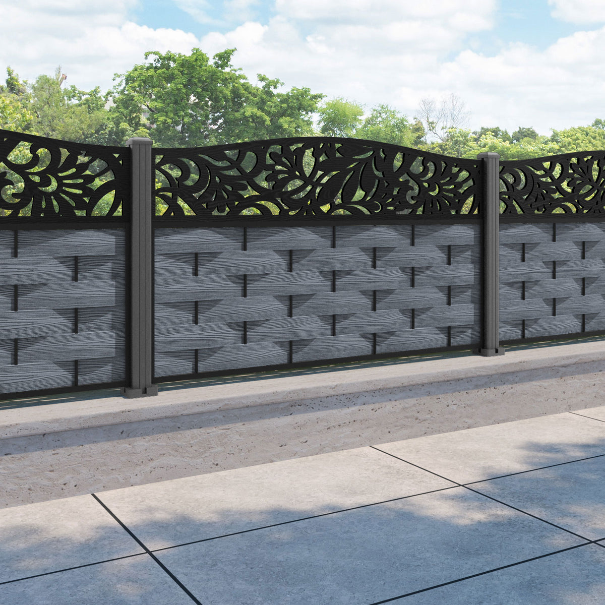 Ripple Heritage Curved Top Fence Panel Anthracite - with our aluminium posts