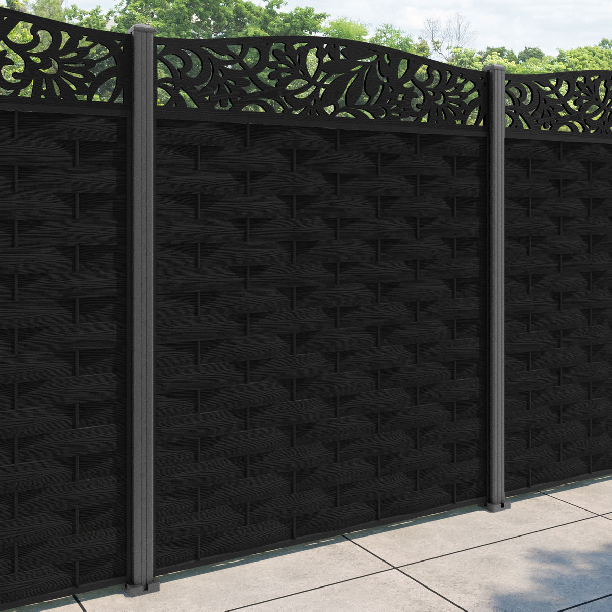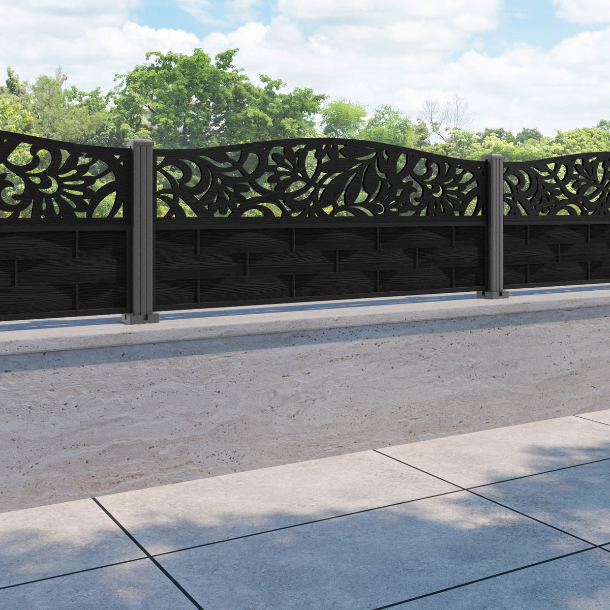 Ripple Heritage Curved Top Fence Panel Black - with our aluminium posts