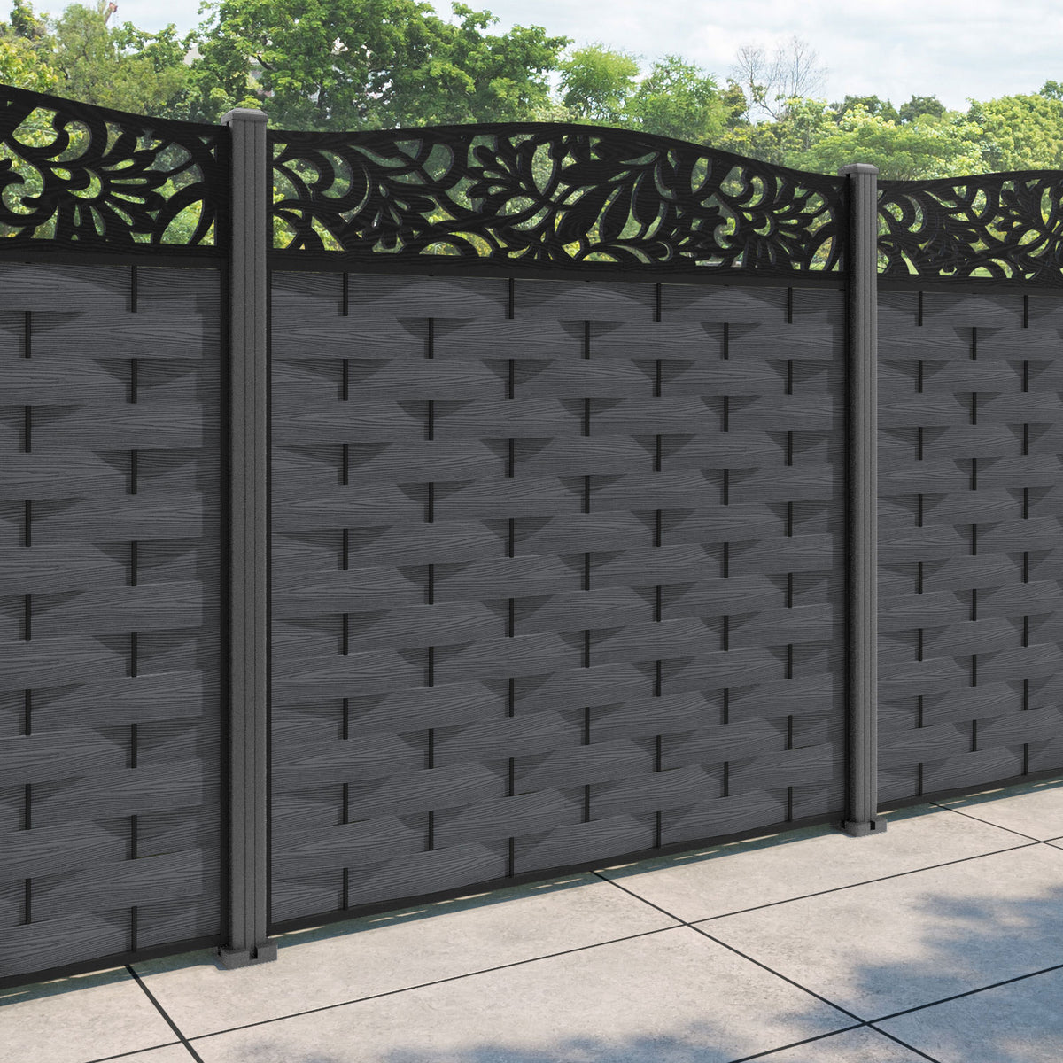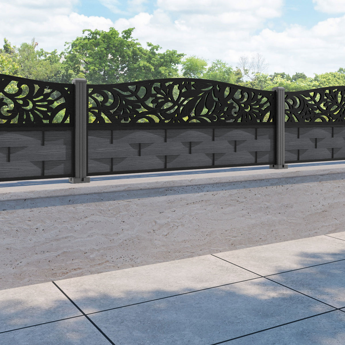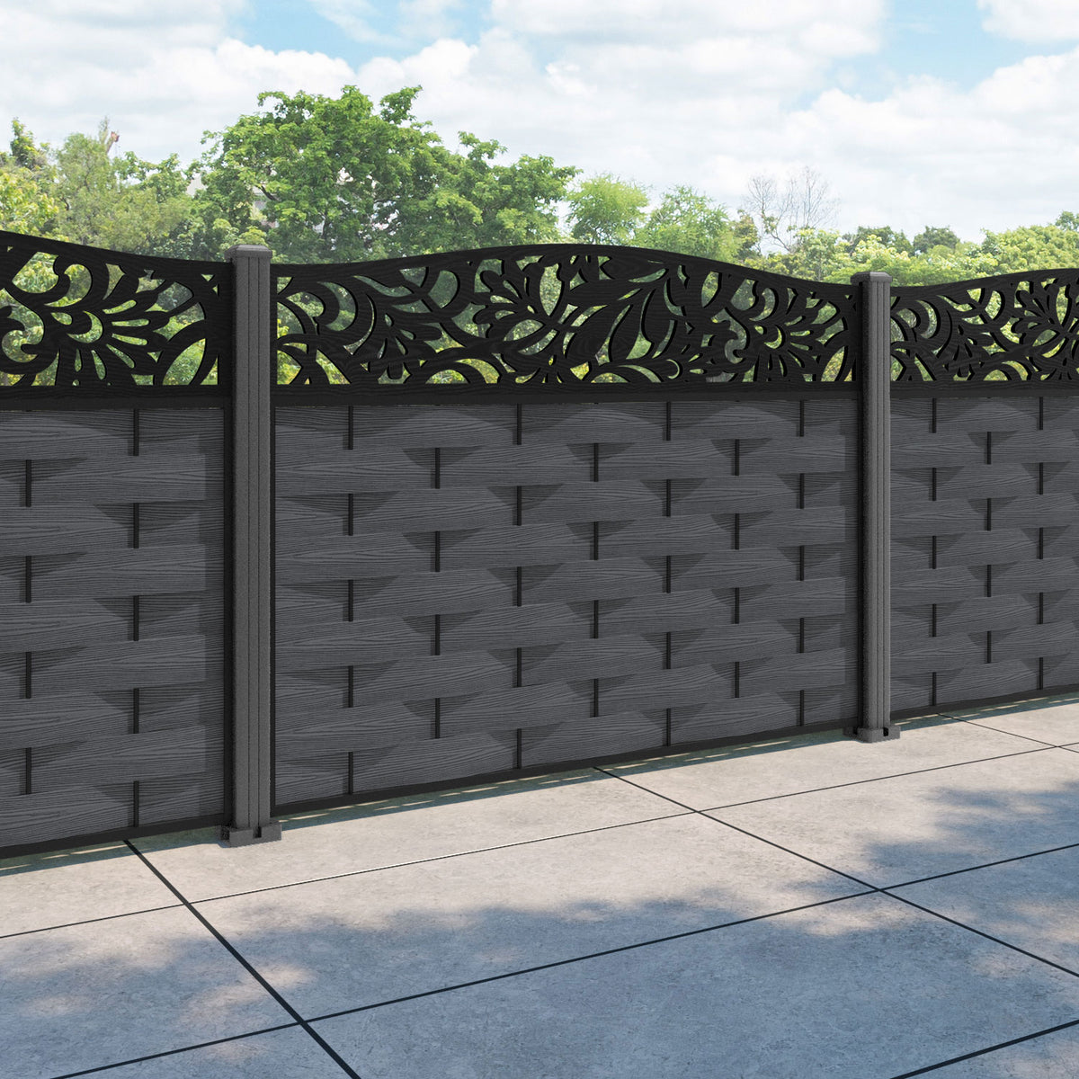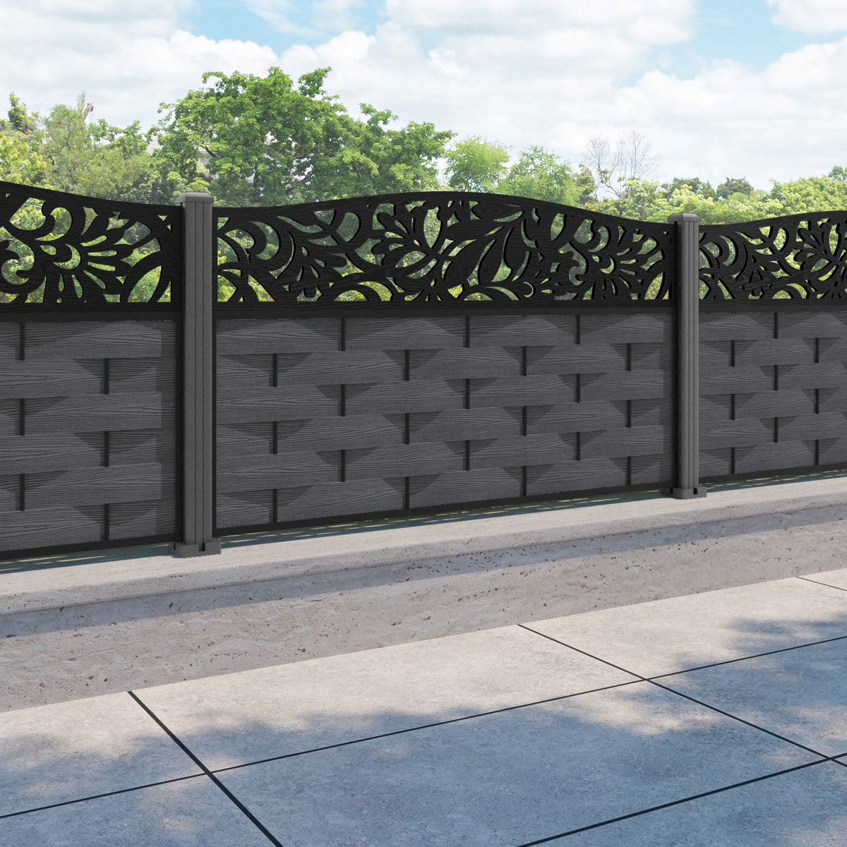 Ripple Heritage Curved Top Fence Panel Dark Grey - with our aluminium posts
