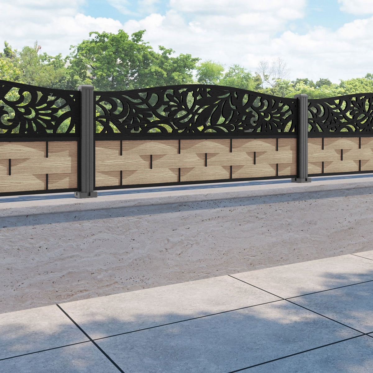 Ripple Heritage Curved Top Fence Panel Light Oak - with our aluminium posts