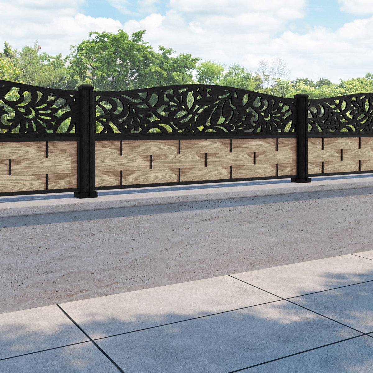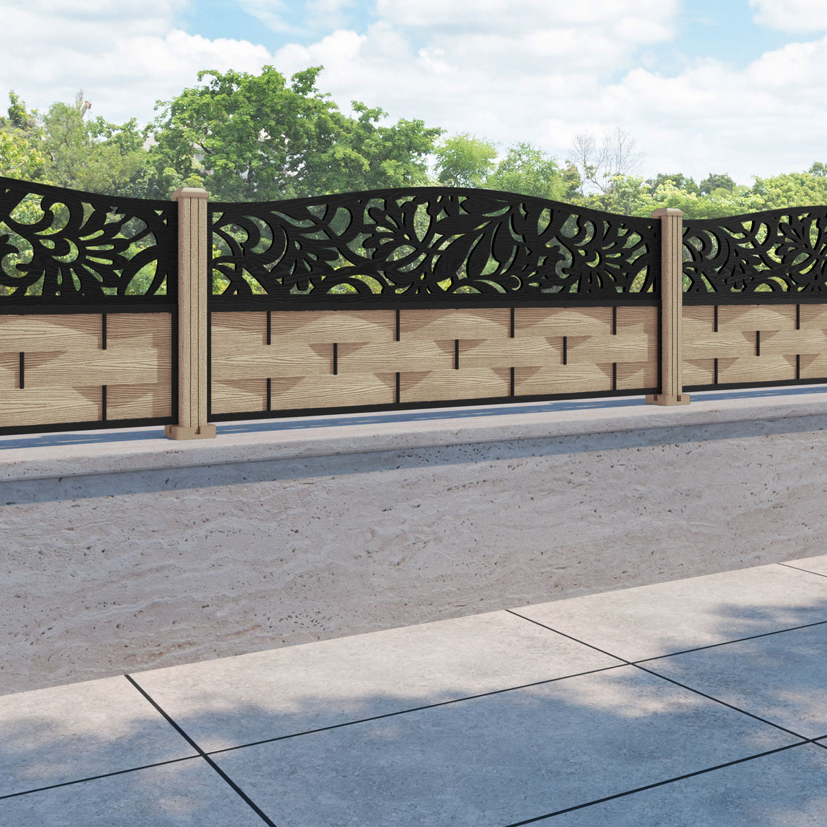 Ripple Heritage Curved Top Fence Panel Light Oak - with our composite posts