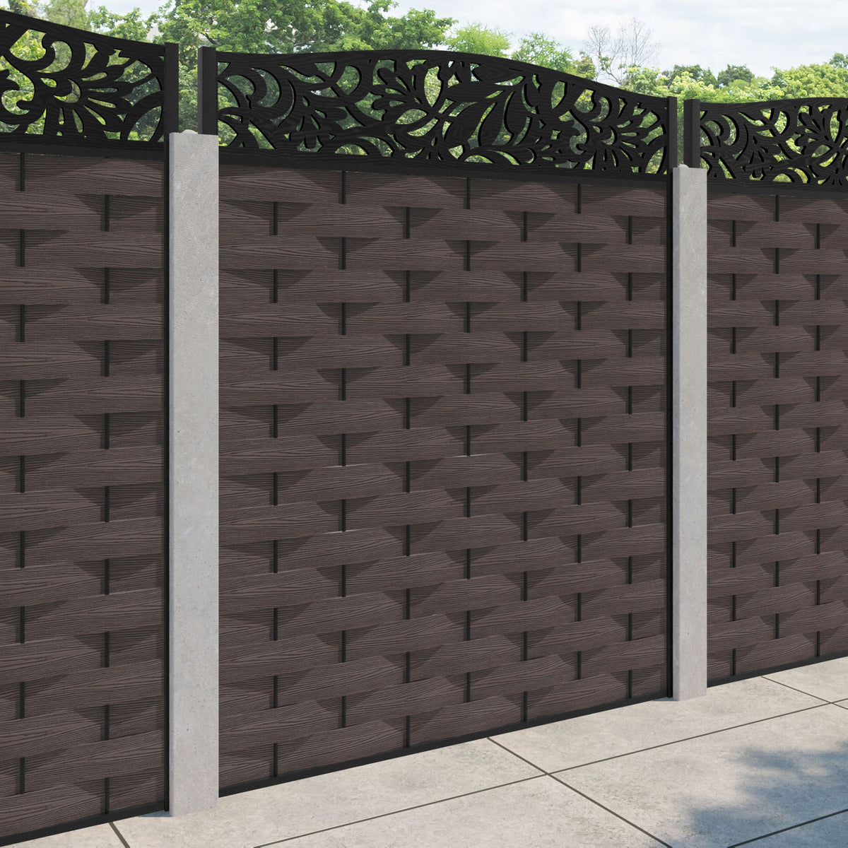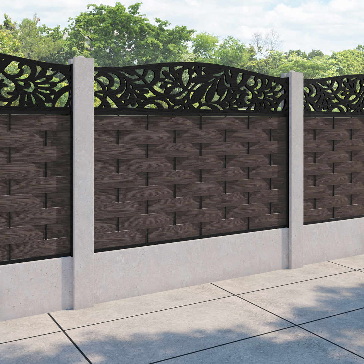 Ripple Heritage Curved Top Fence Panel Mid Brown - for existing concrete posts