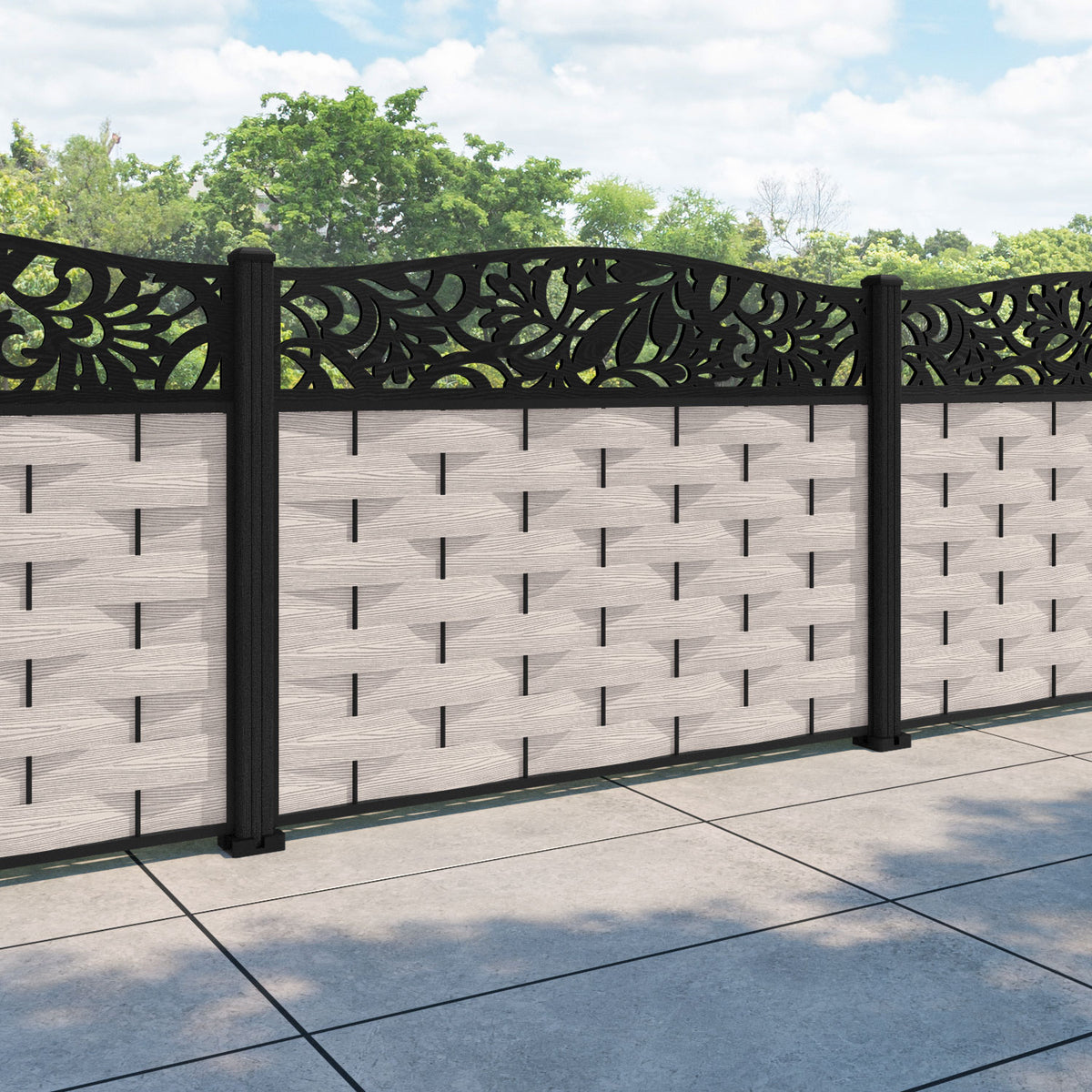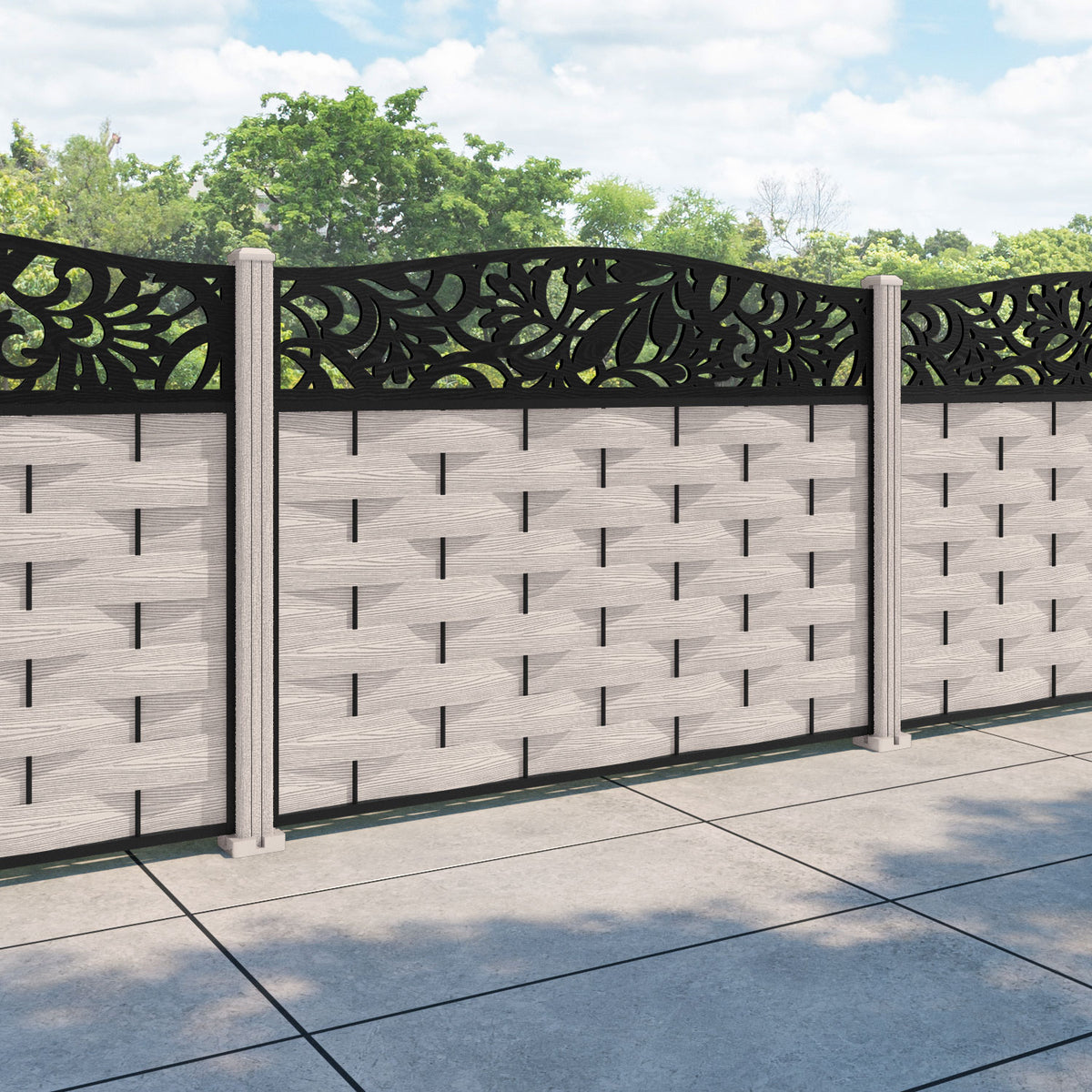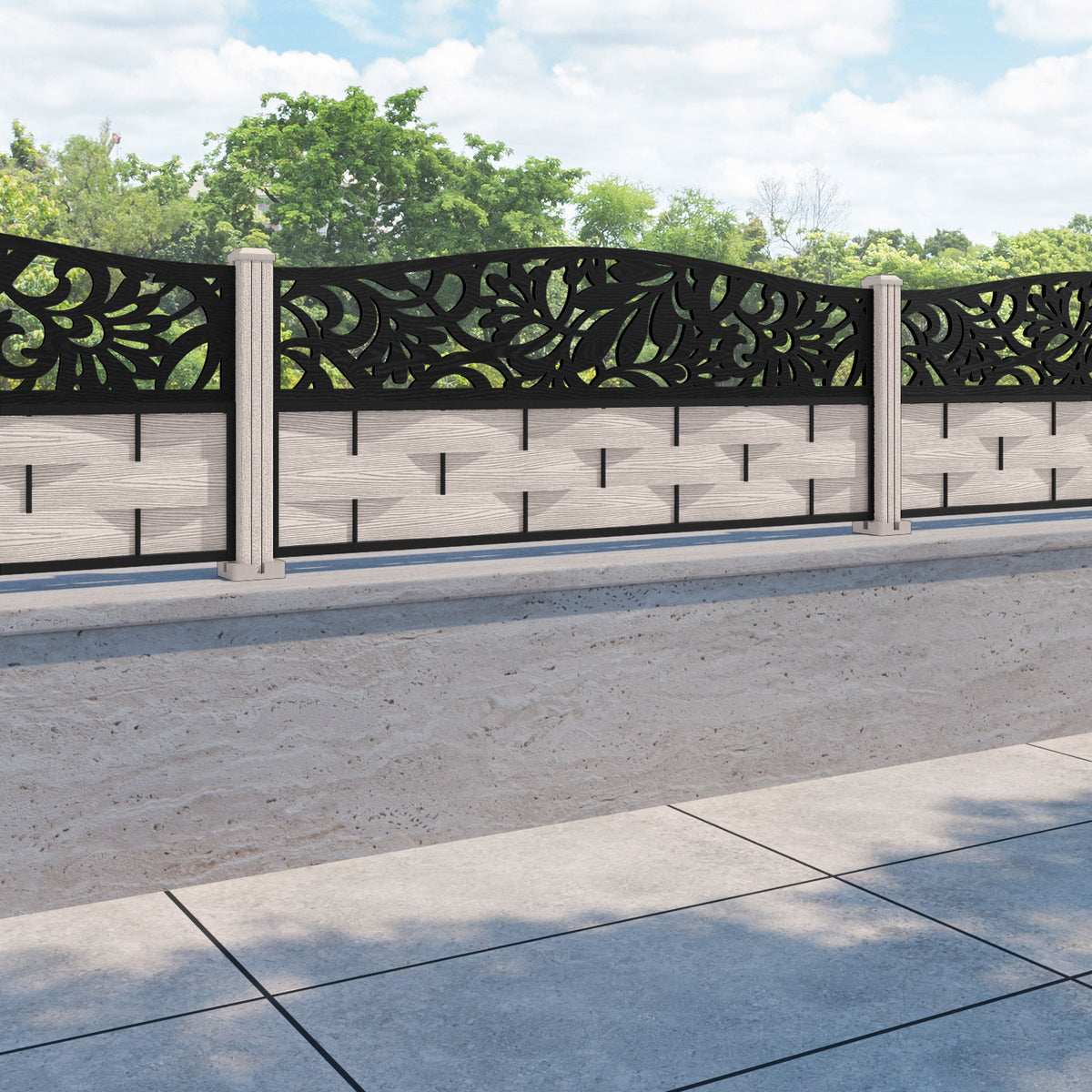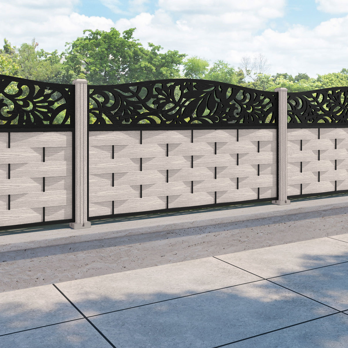 Ripple Heritage Curved Top Fence Panel Mid Stone - with our composite posts