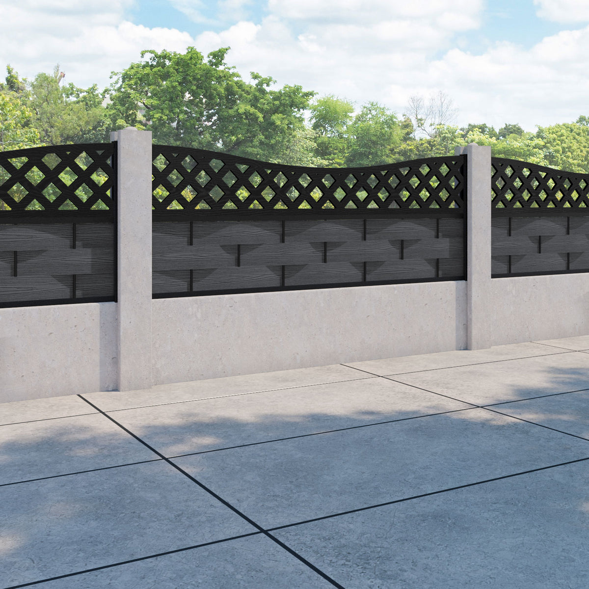 Ripple High Wave Fence Panel Dark Grey - for existing concrete posts