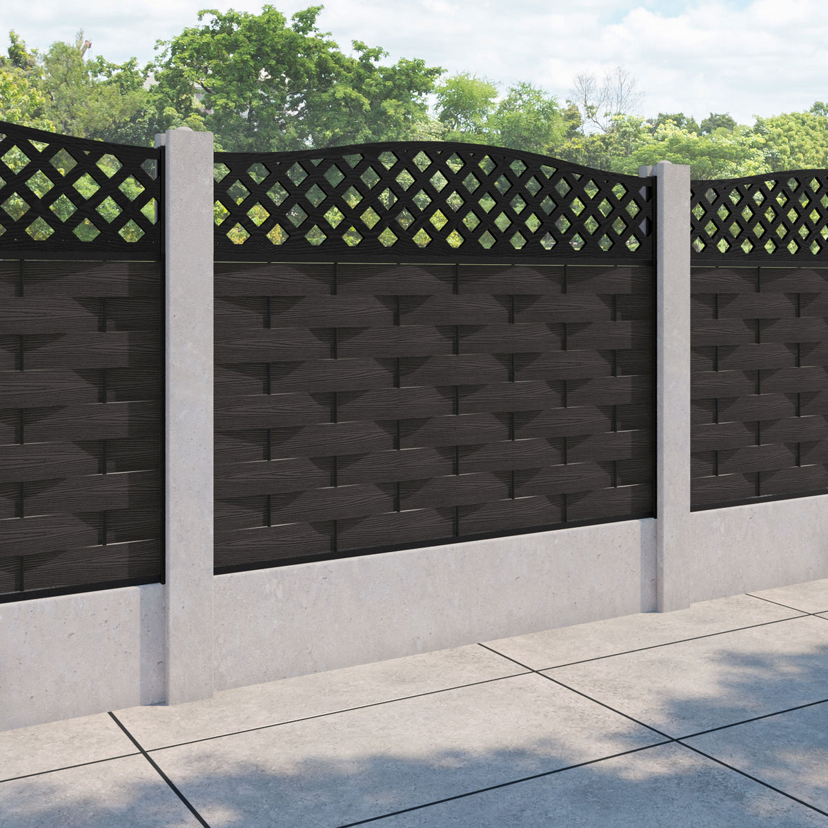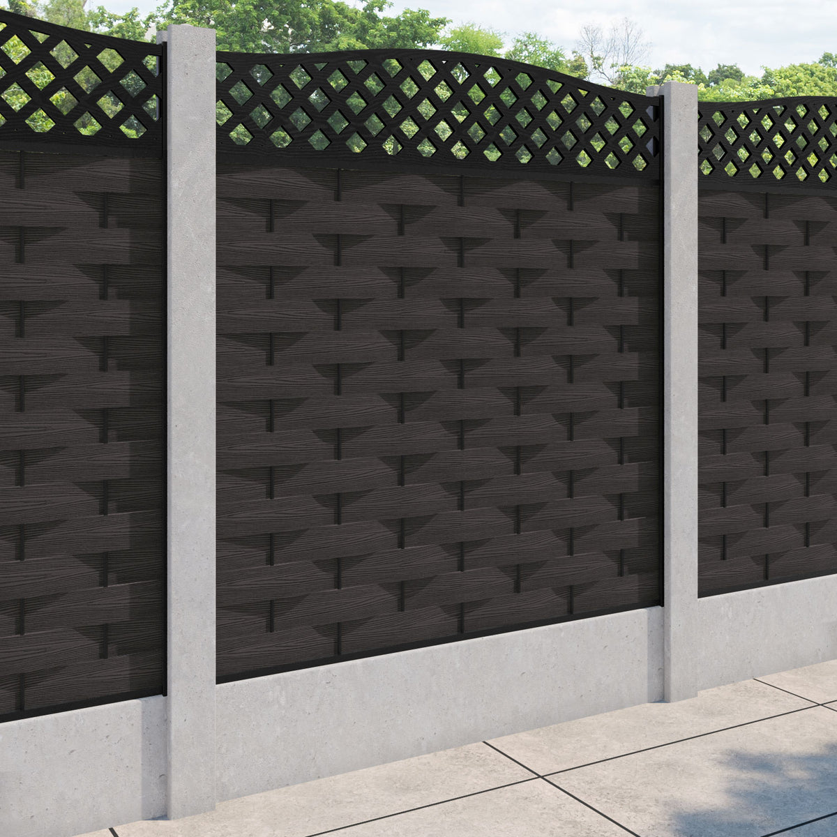 Ripple High Wave Fence Panel Dark Oak - for existing concrete posts