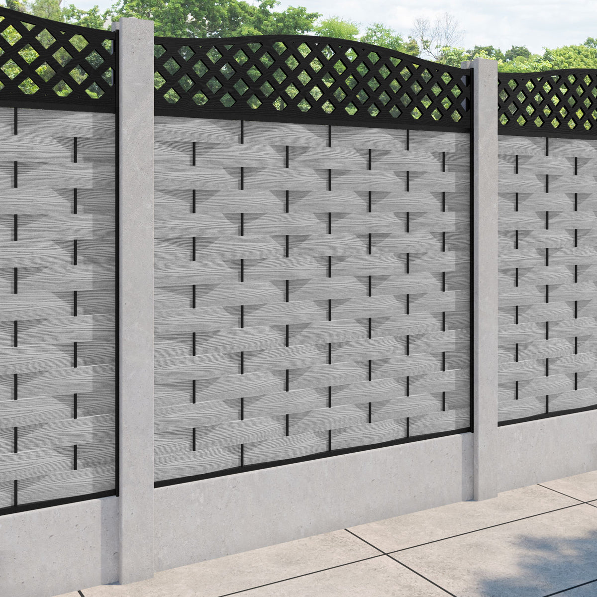 Ripple High Wave Fence Panel Light Grey - for existing concrete posts