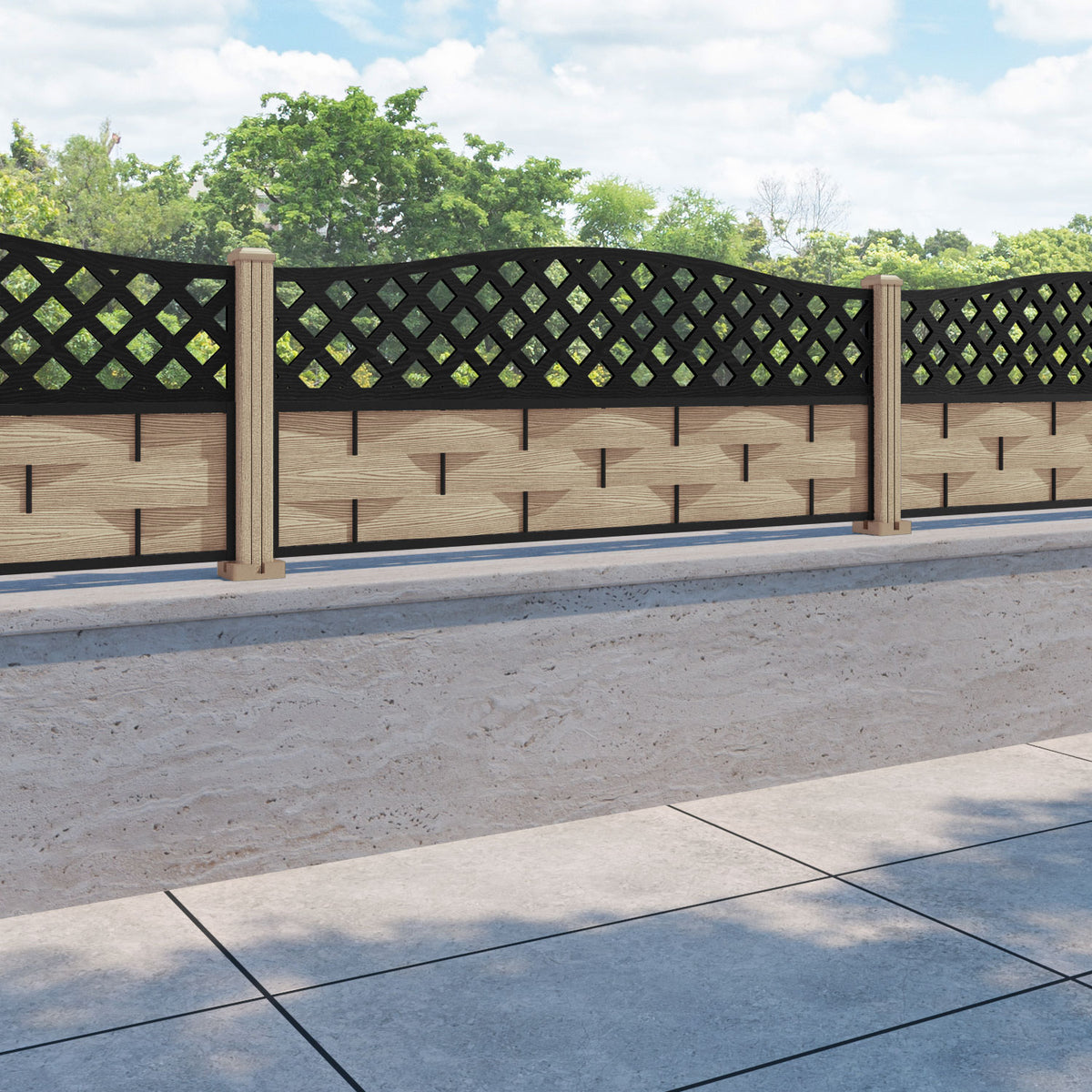 Ripple High Wave Fence Panel Light Oak - with our composite posts