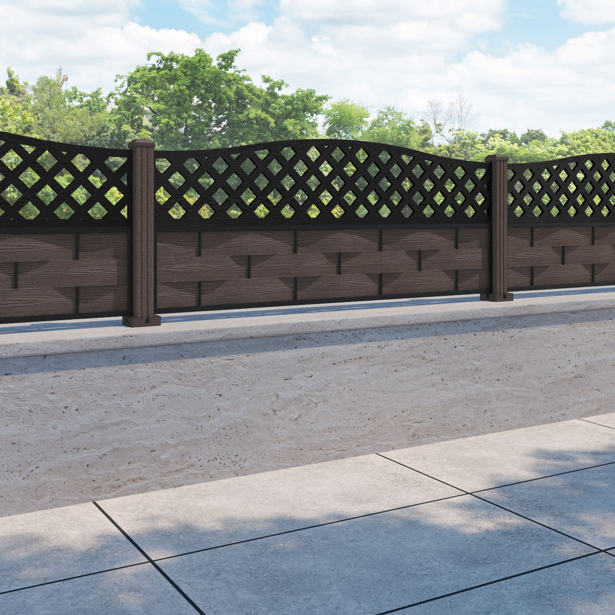 Ripple High Wave Fence Panel Mid Brown - with our composite posts