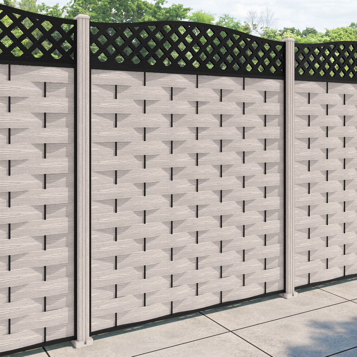 Ripple High Wave Curved Top Fence Panel Mid Stone - with our composite posts