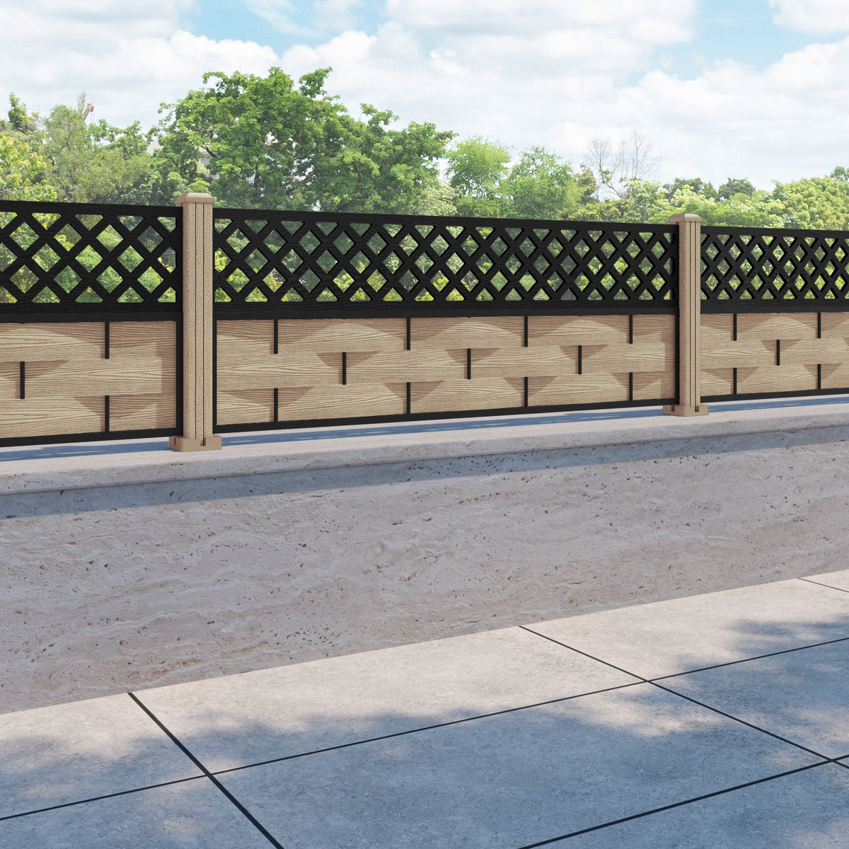 Ripple Hive Fence Panel Light Oak - with our composite posts