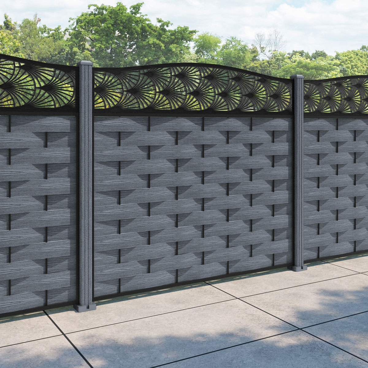 Ripple Laurel Curved Top Fence Panel Anthracite - with our composite posts