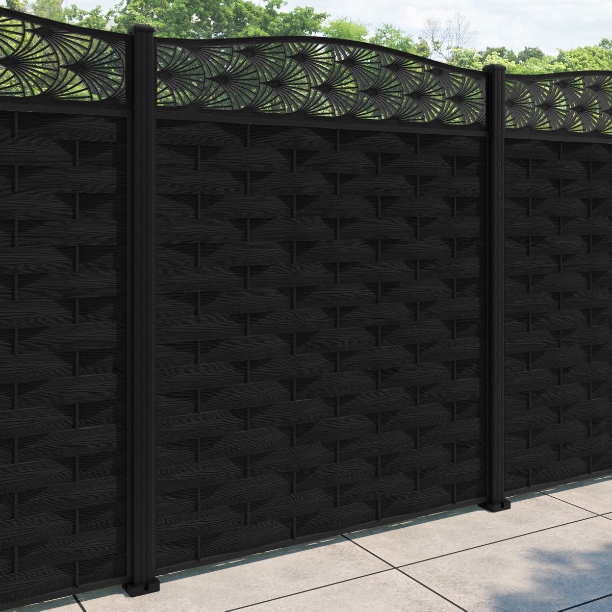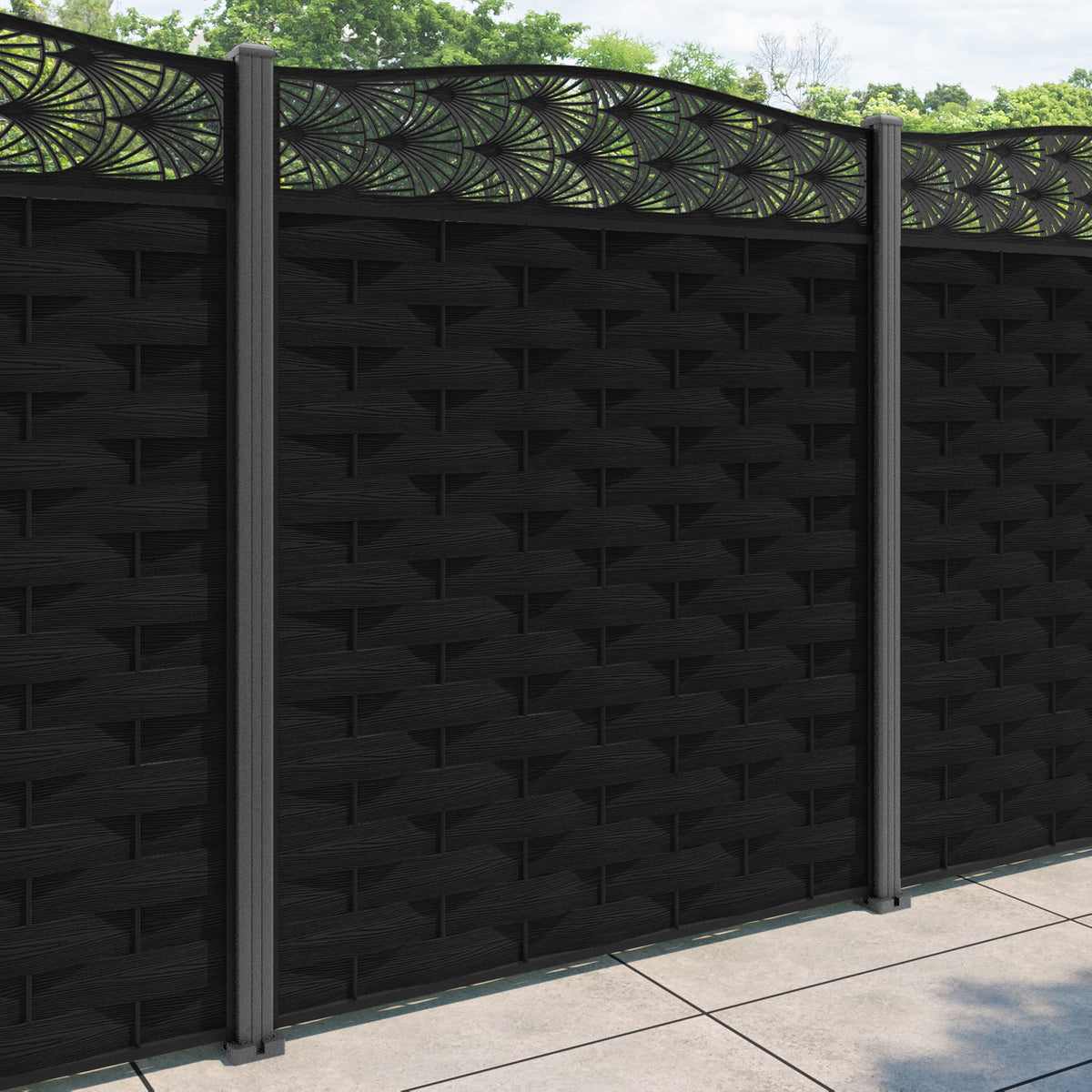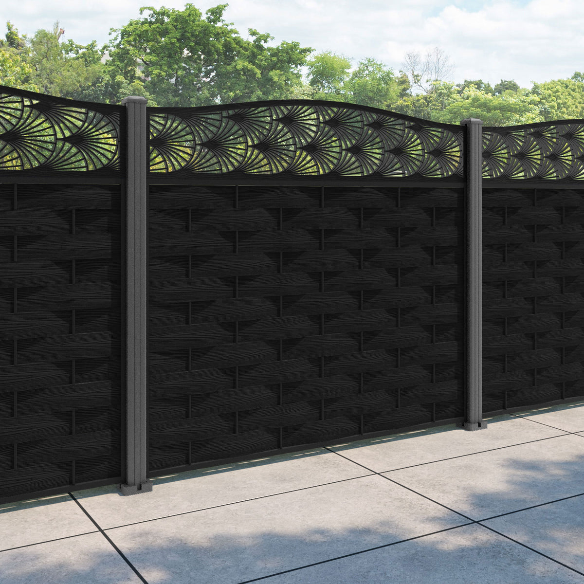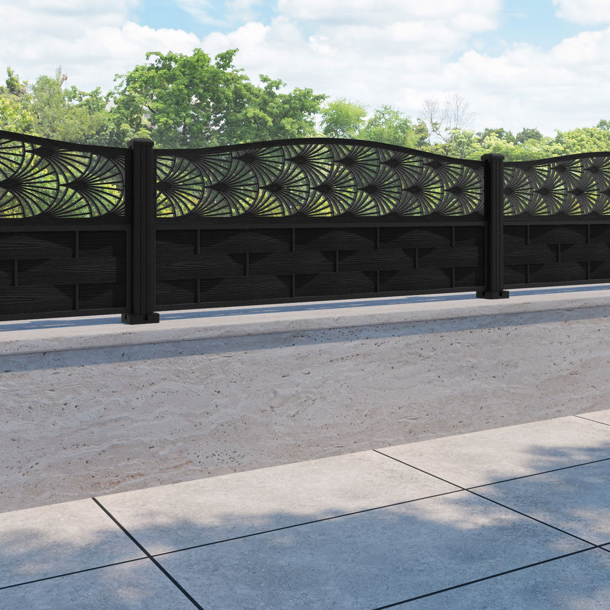 Ripple Laurel Curved Top Fence Panel Black - with our aluminium posts