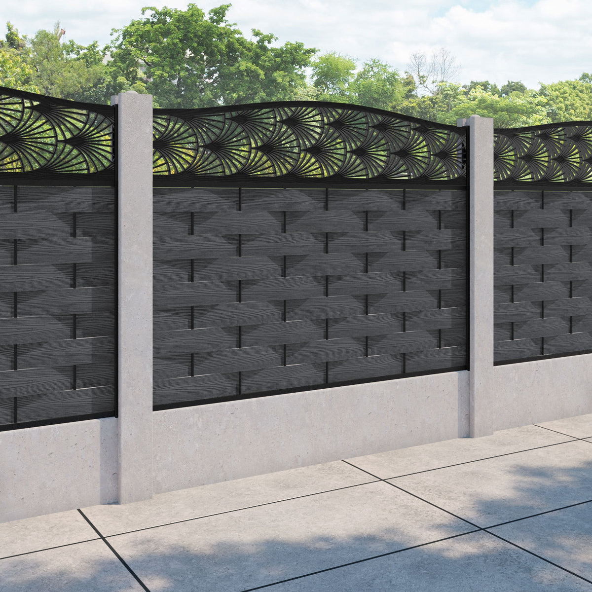 Ripple Laurel Curved Top Fence Panel Dark Grey - for existing concrete posts
