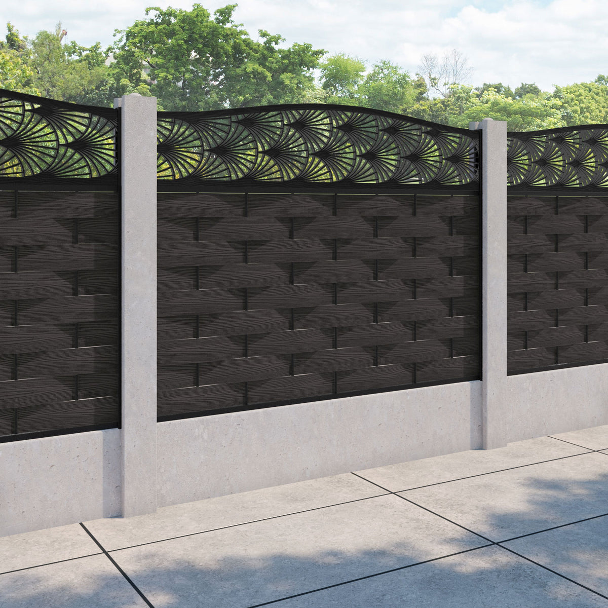 Ripple Laurel Curved Top Fence Panel Dark Oak - for existing concrete posts