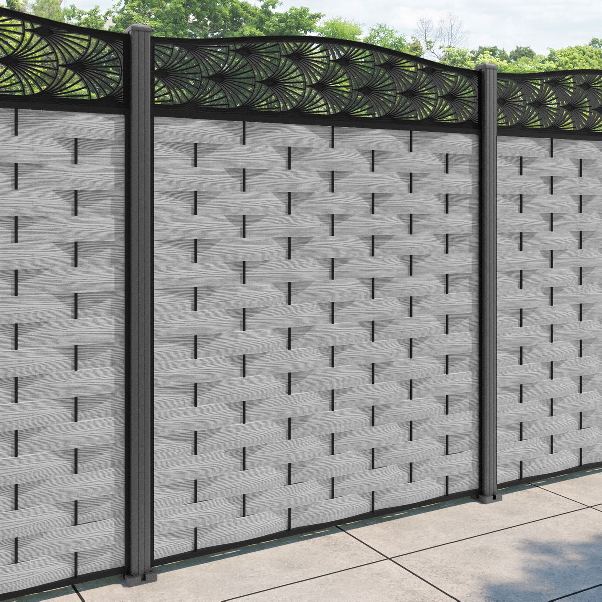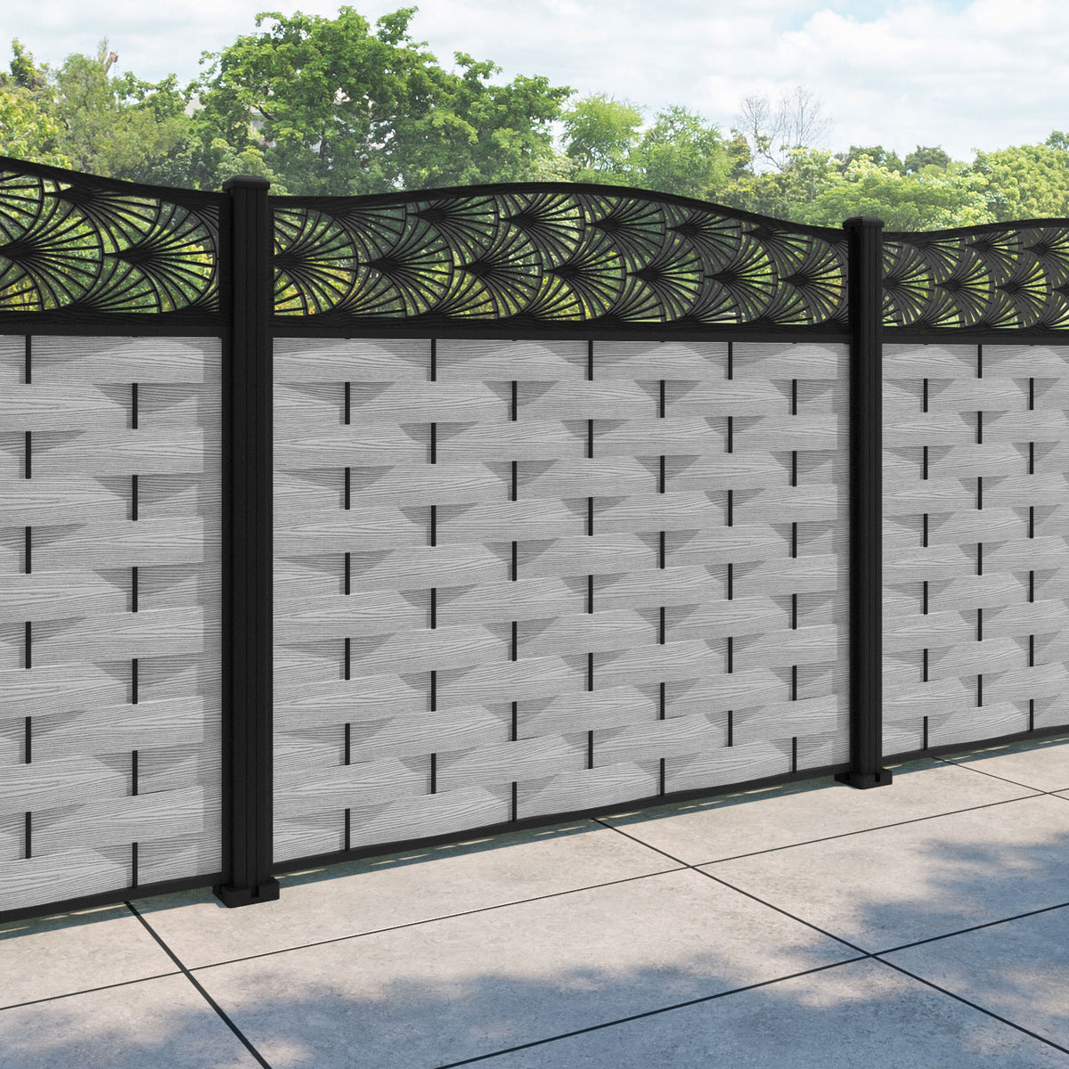 Ripple Laurel Curved Top Fence Panel Light Grey - with our aluminium posts