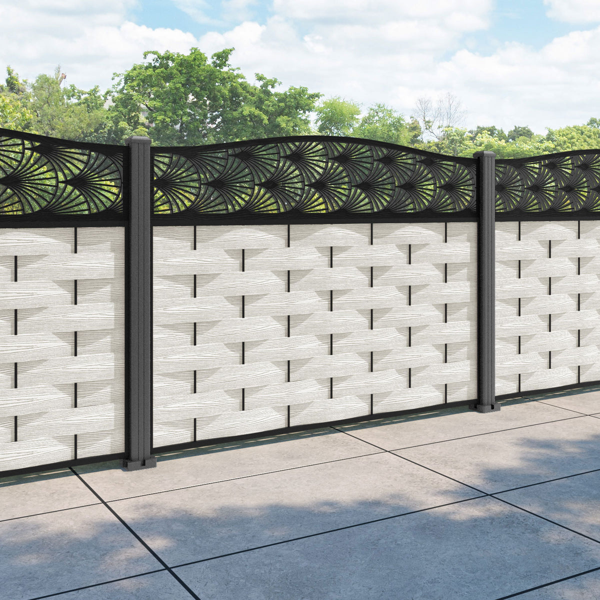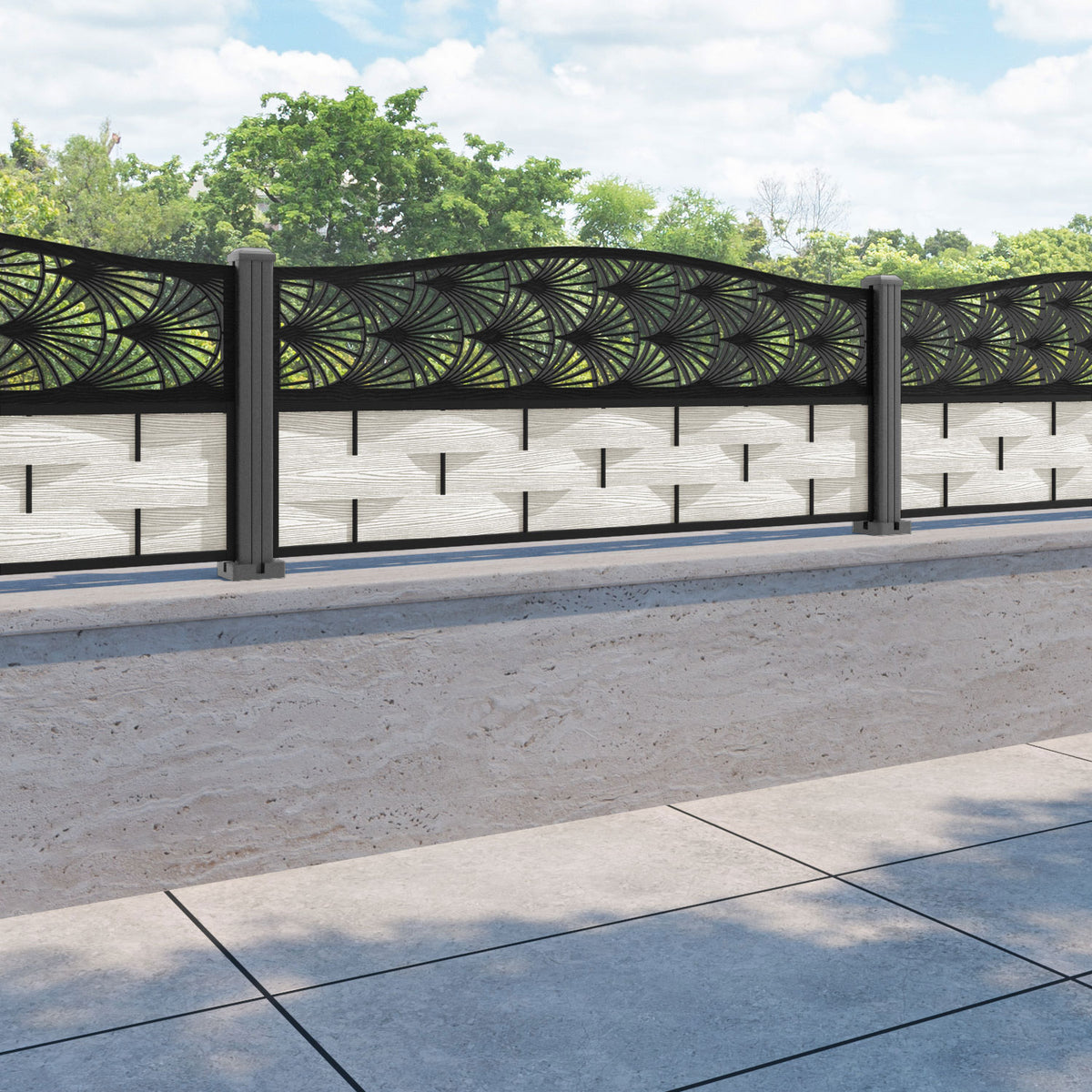 Ripple Laurel Curved Top Fence Panel Light Stone - with our aluminium posts