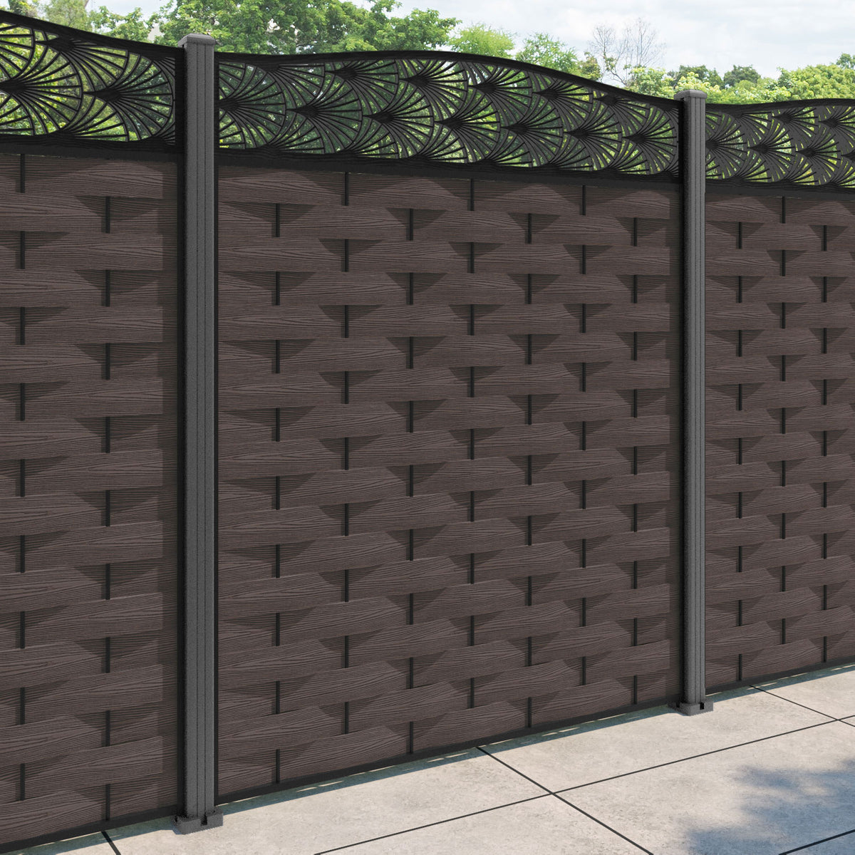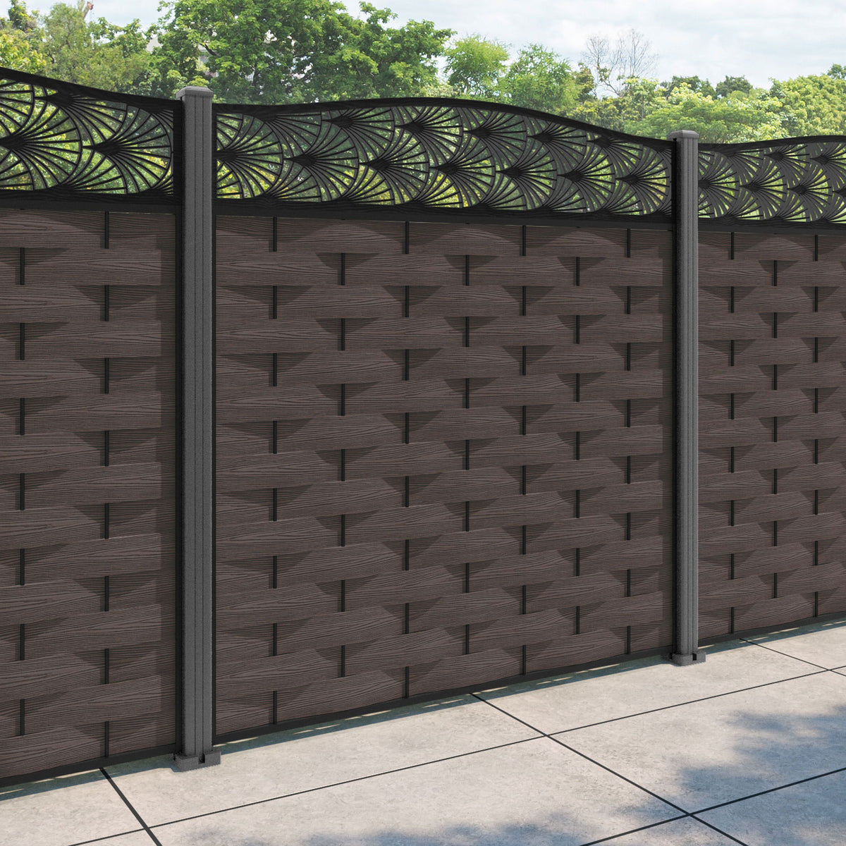 Ripple Laurel Curved Top Fence Panel Mid Brown - with our aluminium posts