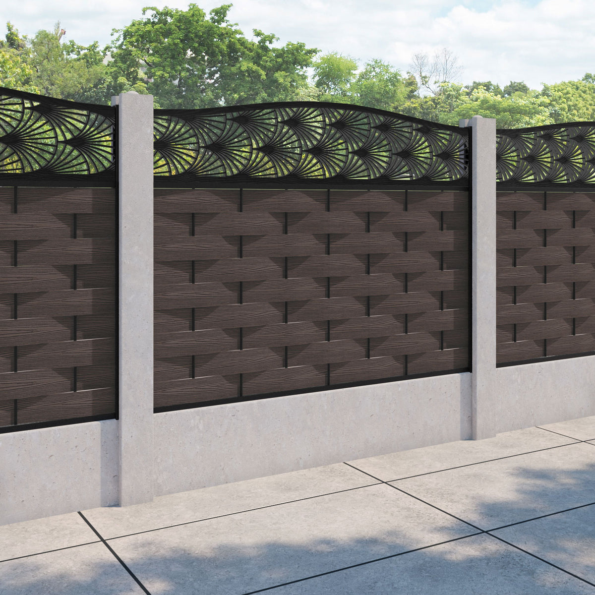 Ripple Laurel Curved Top Fence Panel Mid Brown - for existing concrete posts