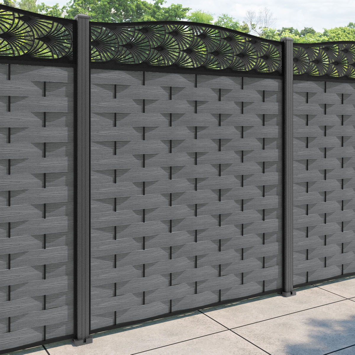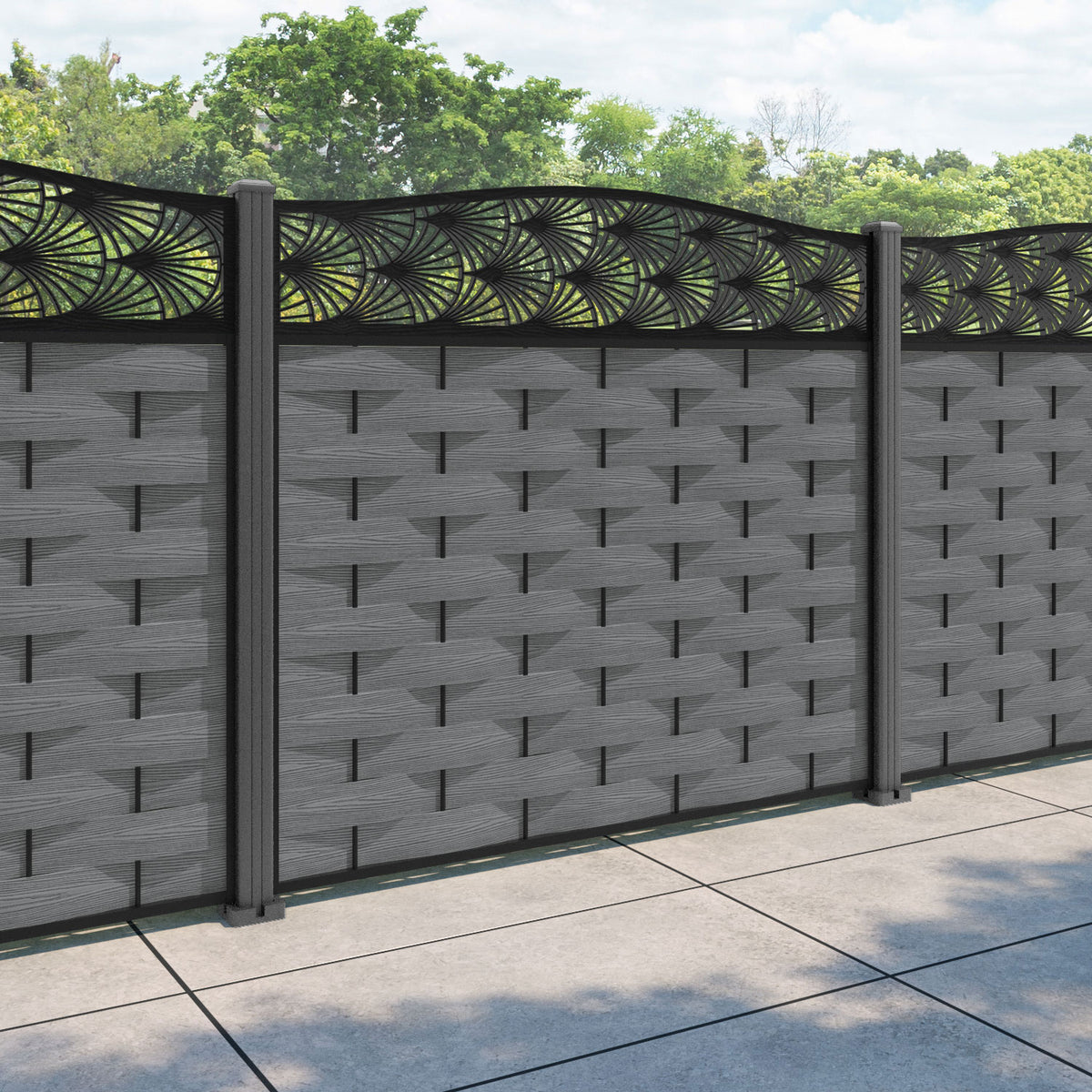 Ripple Laurel Curved Top Fence Panel Mid Grey - with our aluminium posts