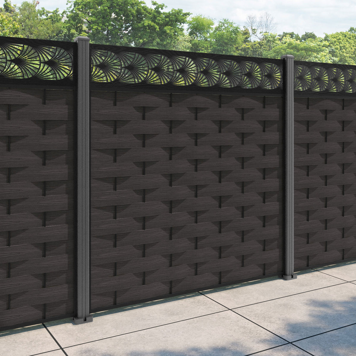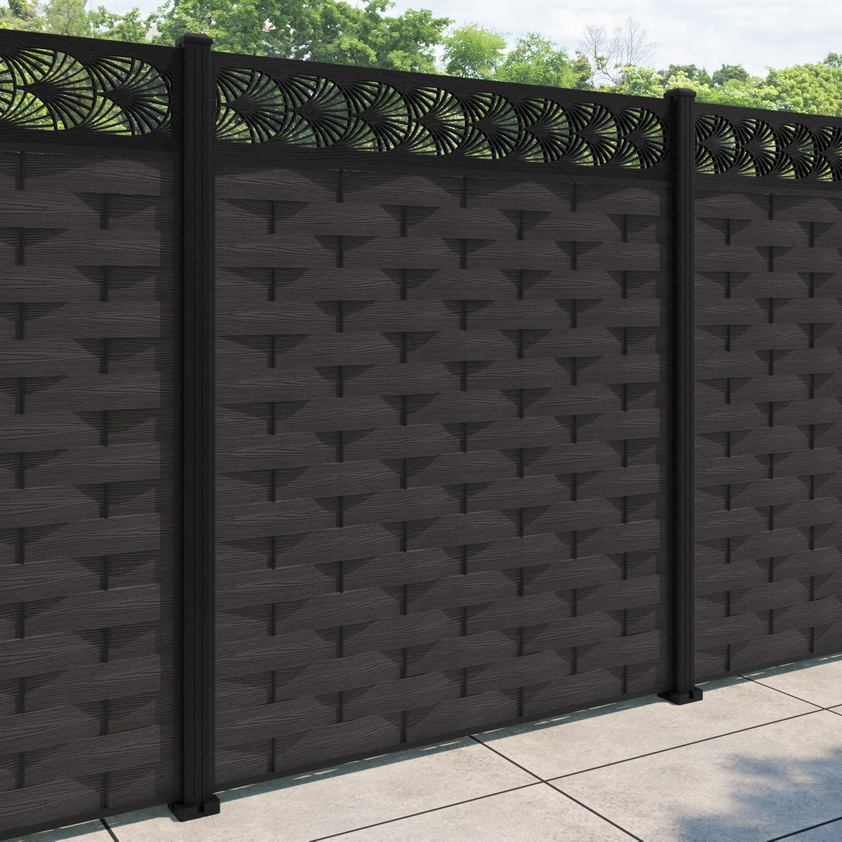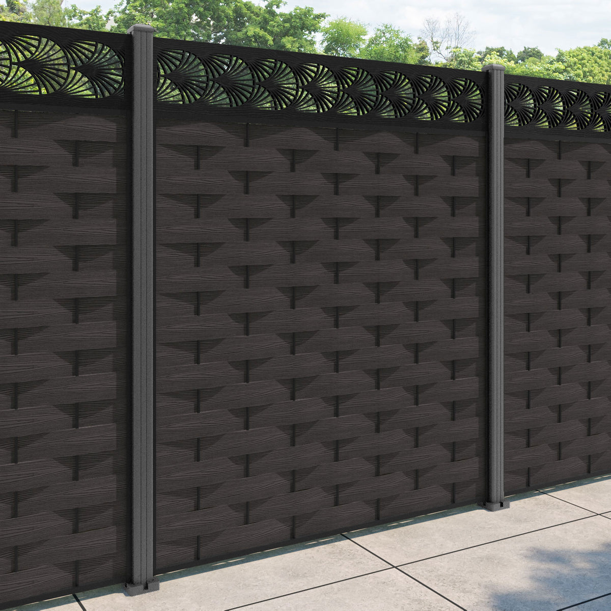 Ripple Laurel Fence Panel Dark Oak - with our aluminium posts