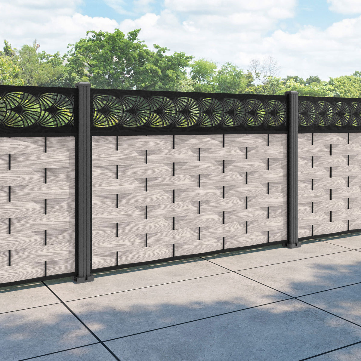Ripple Laurel Fence Panel Mid Stone - with our aluminium posts