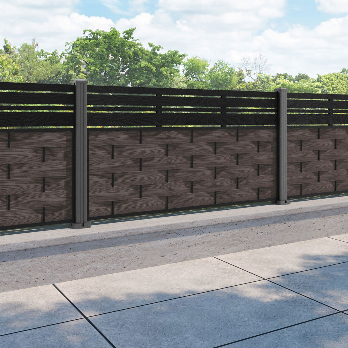 Ripple Linea Fence Panel Mid Brown - with our aluminium posts