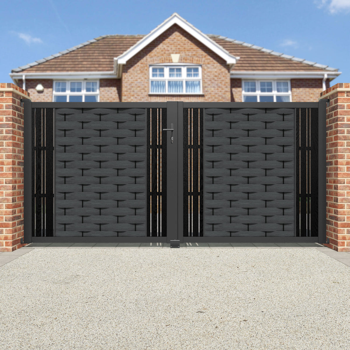 Pair your gate with our eco-friendly composite or aluminium slats for a seamless match with our fencing collections, ensuring a stylish and cohesive look.
