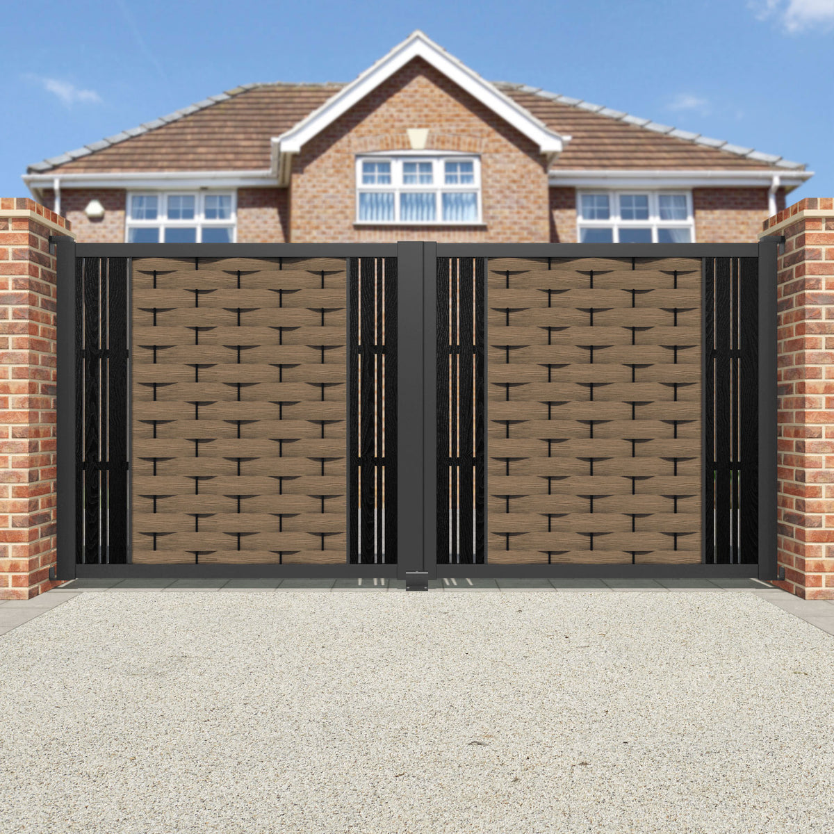 Ripple Linea Straight Top Driveway Gate Teak - Middle & End Screen