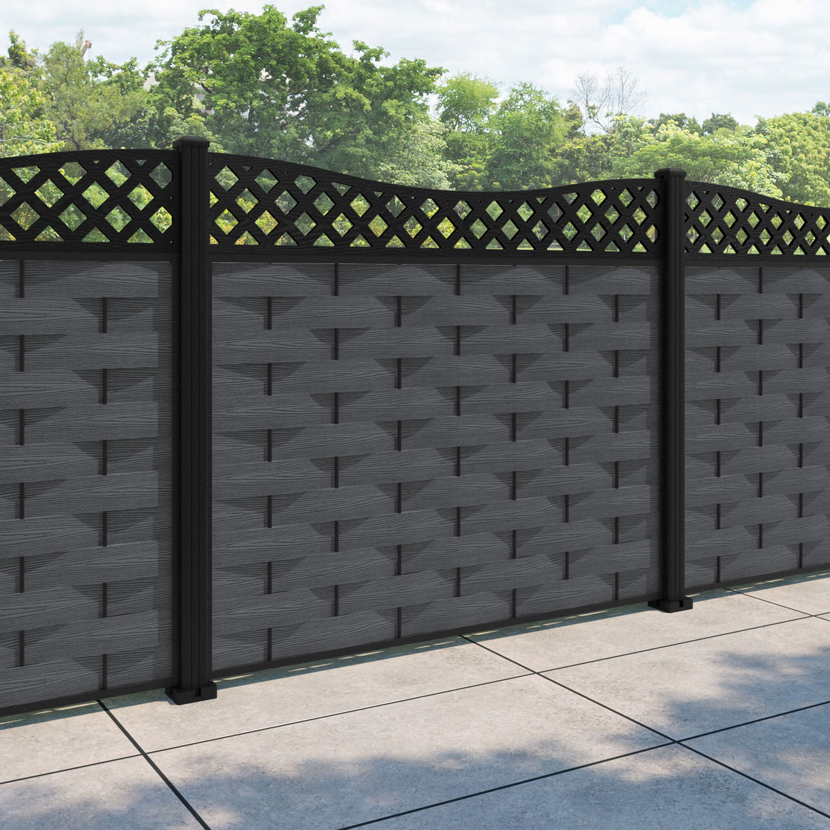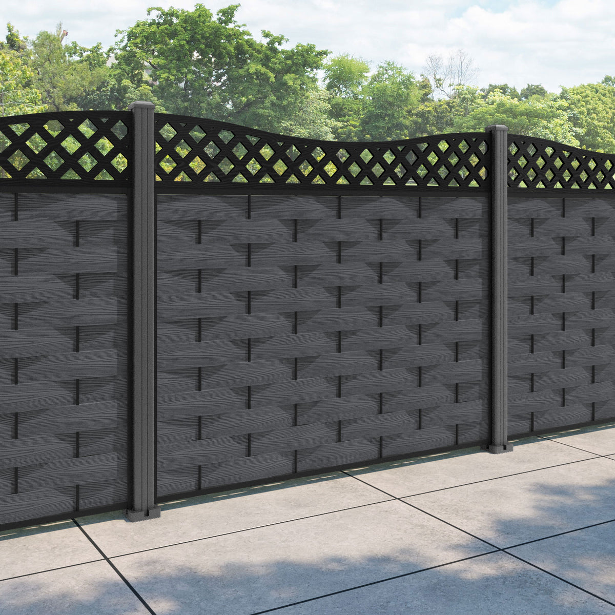Ripple Low Wave Fence Panel Dark Grey - with our aluminium posts