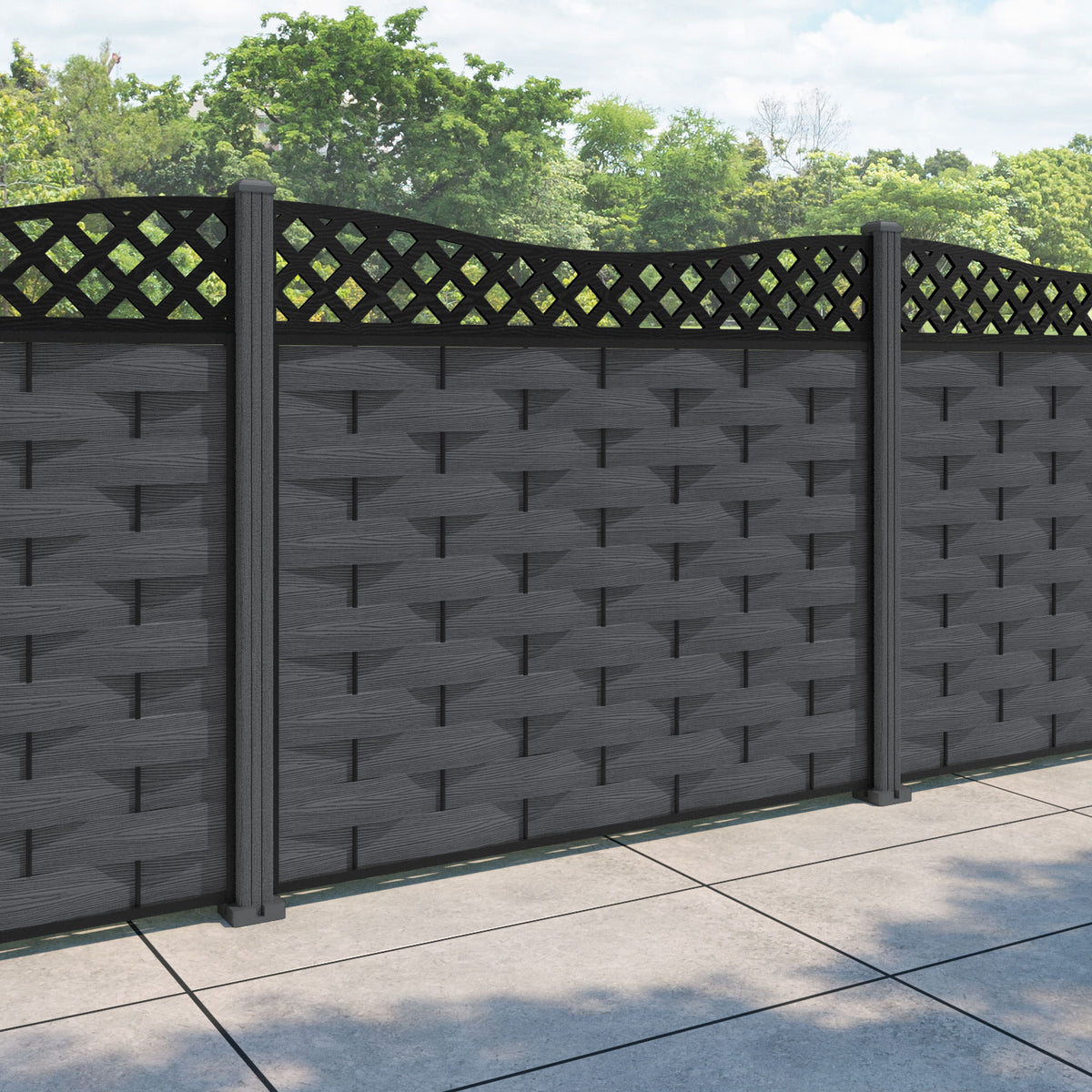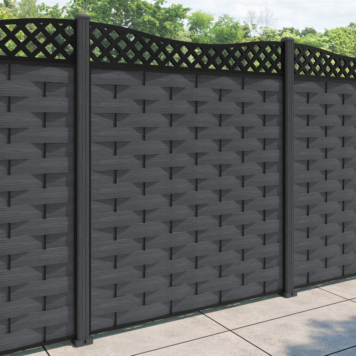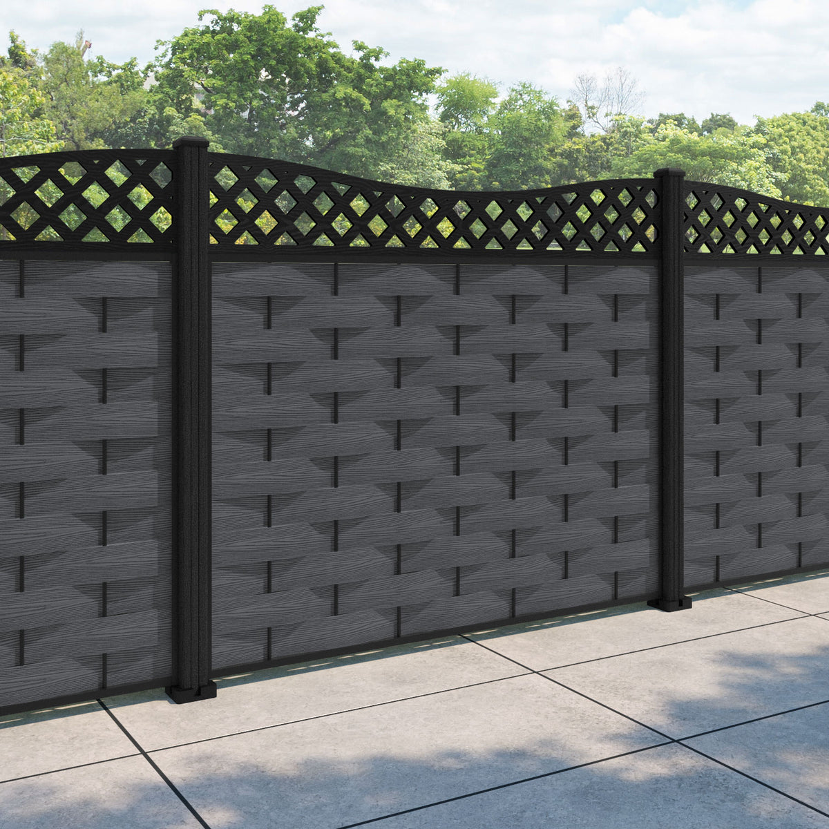 Ripple Low Wave Fence Panel Dark Grey - with our composite posts