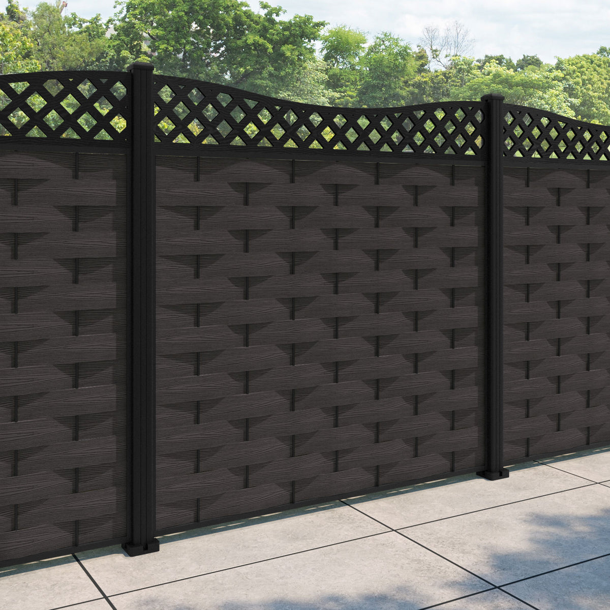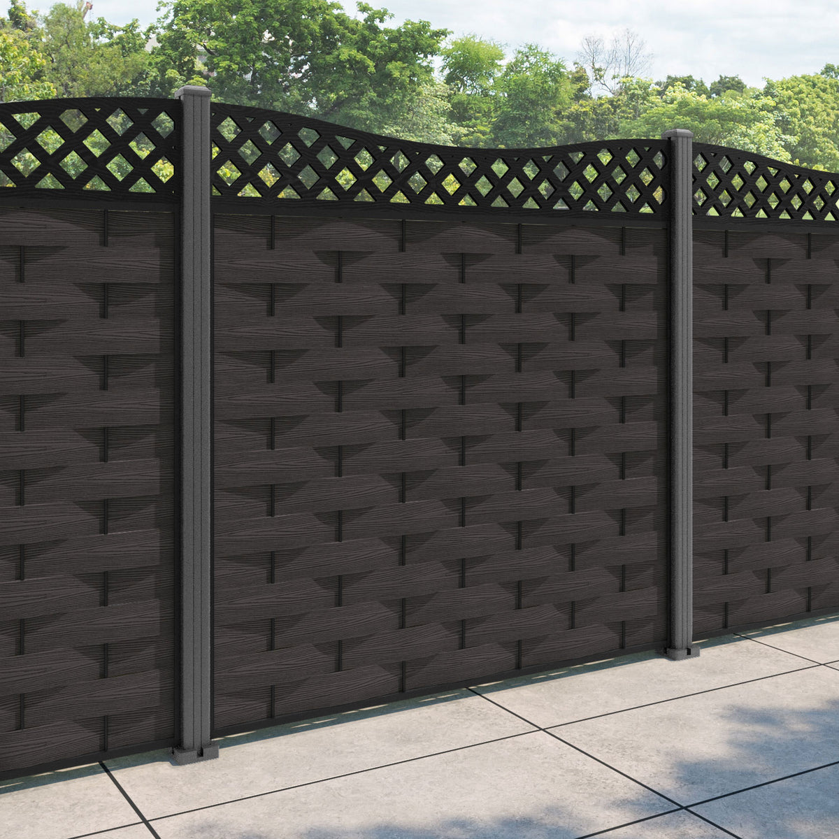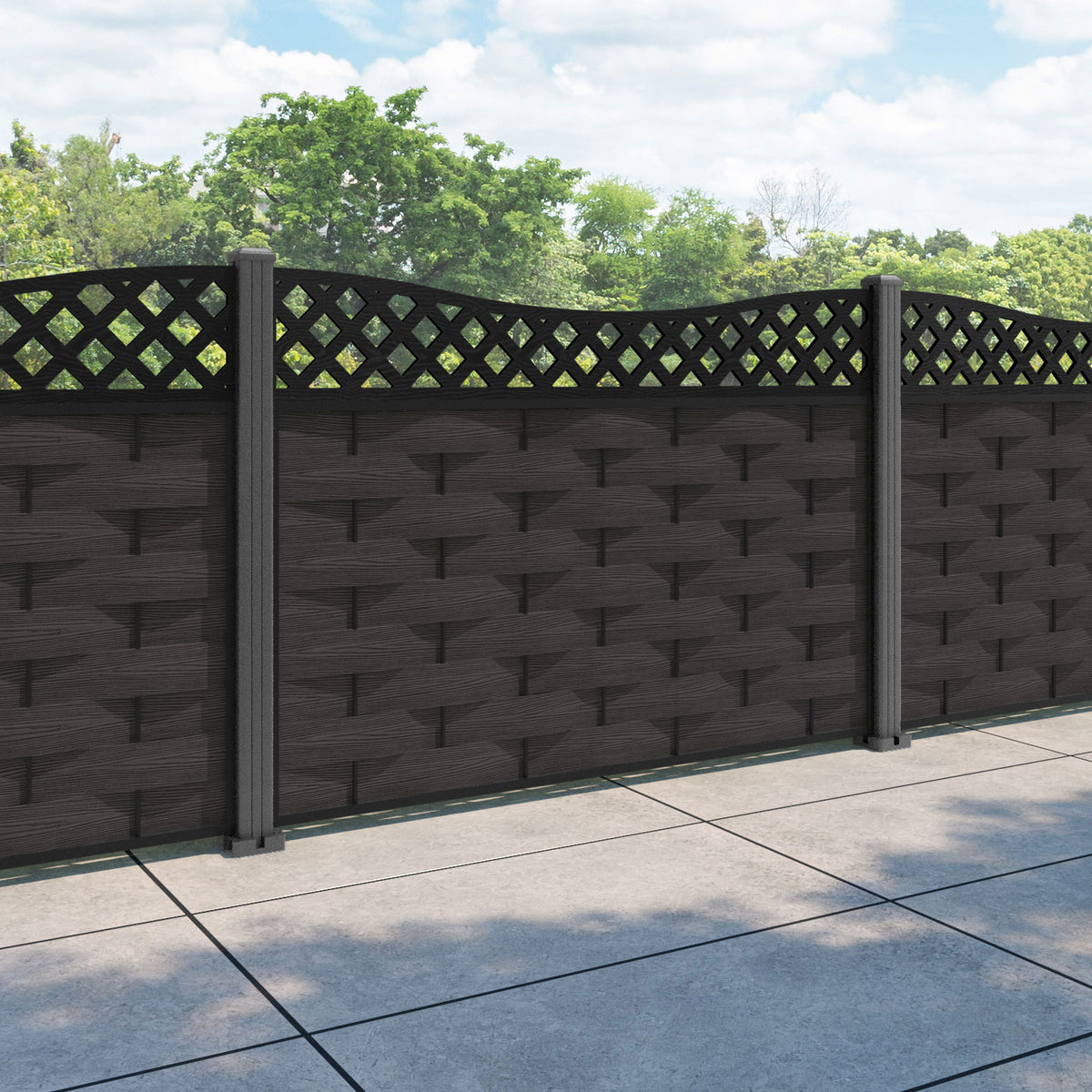 Ripple Low Wave Fence Panel Dark Oak - with our aluminium posts