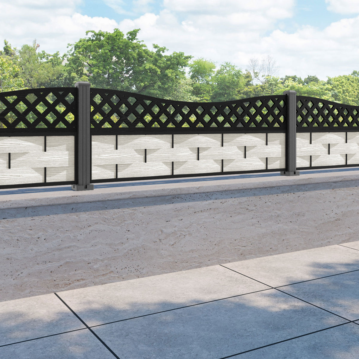 Ripple Low Wave Fence Panel Light Stone - with our aluminium posts