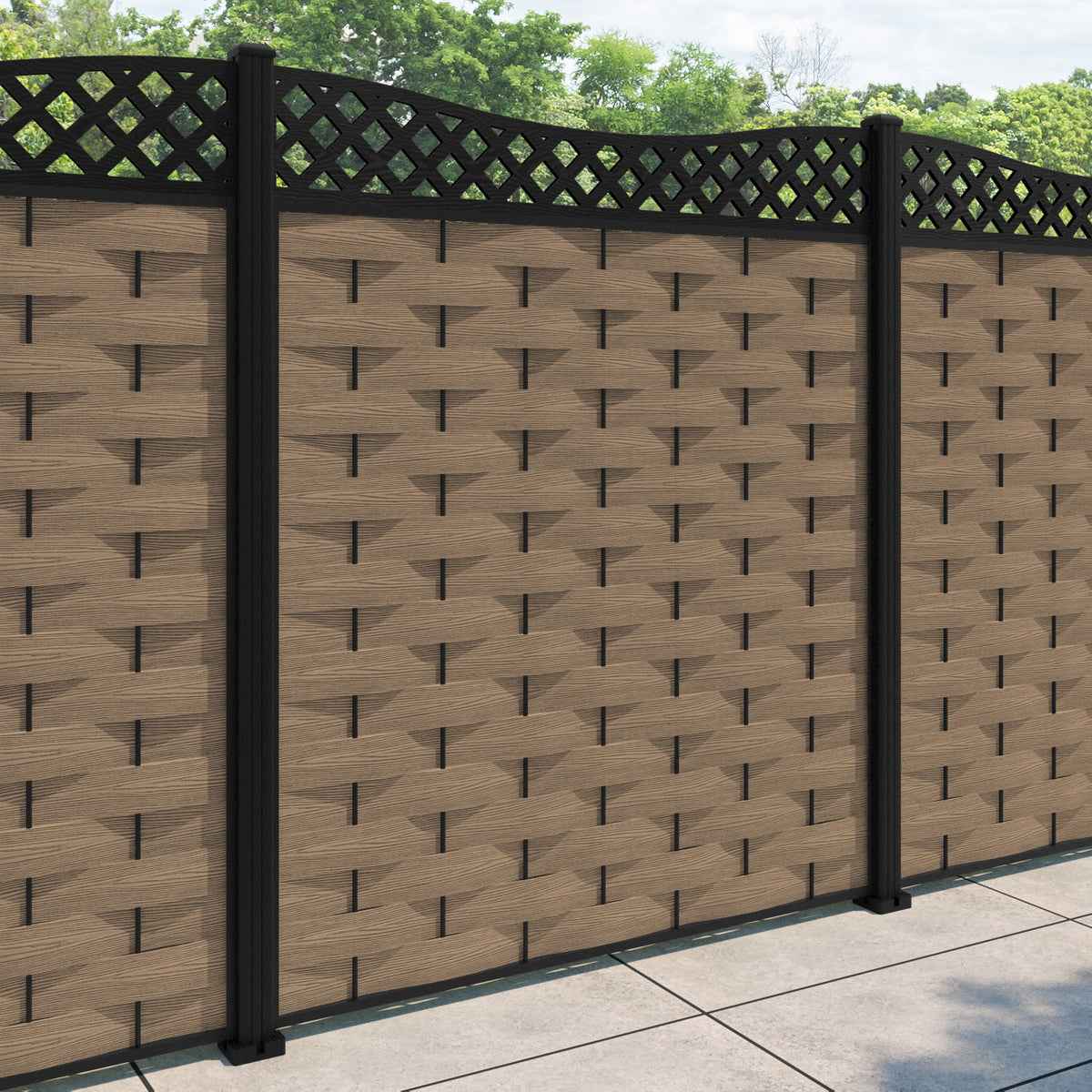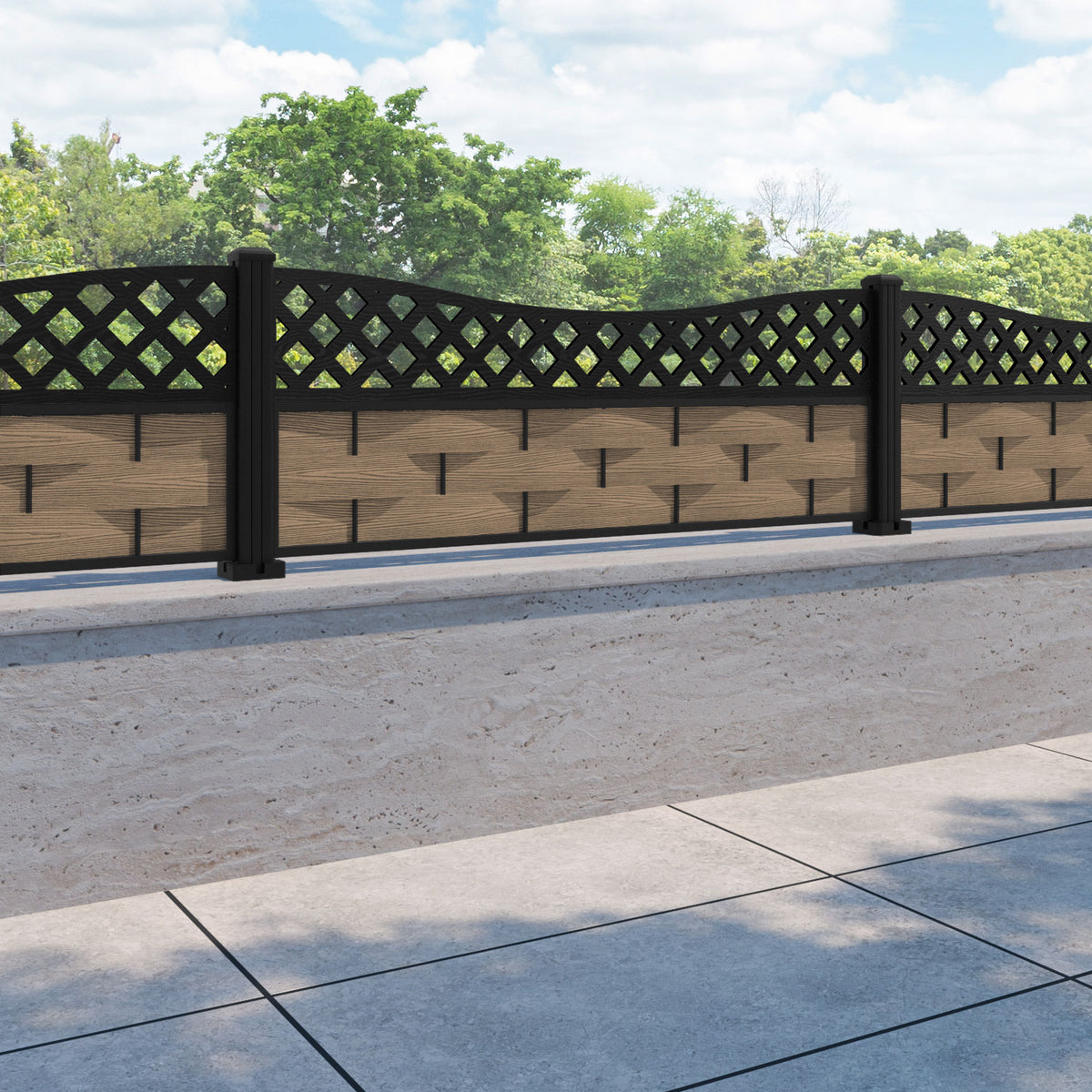 Ripple Low Wave Fence Panel Teak - with our aluminium posts