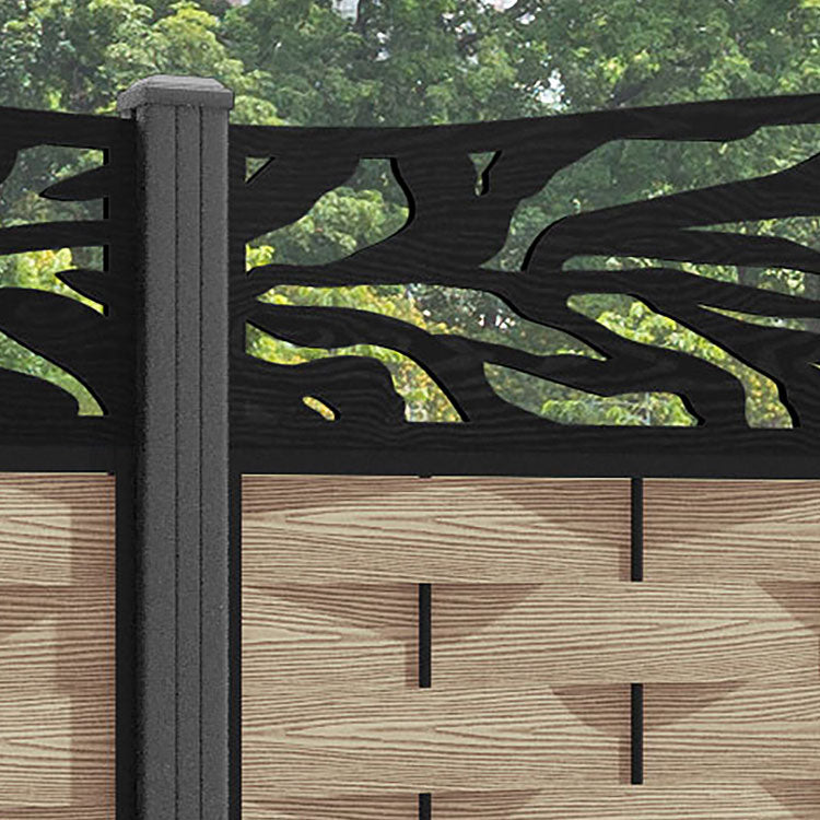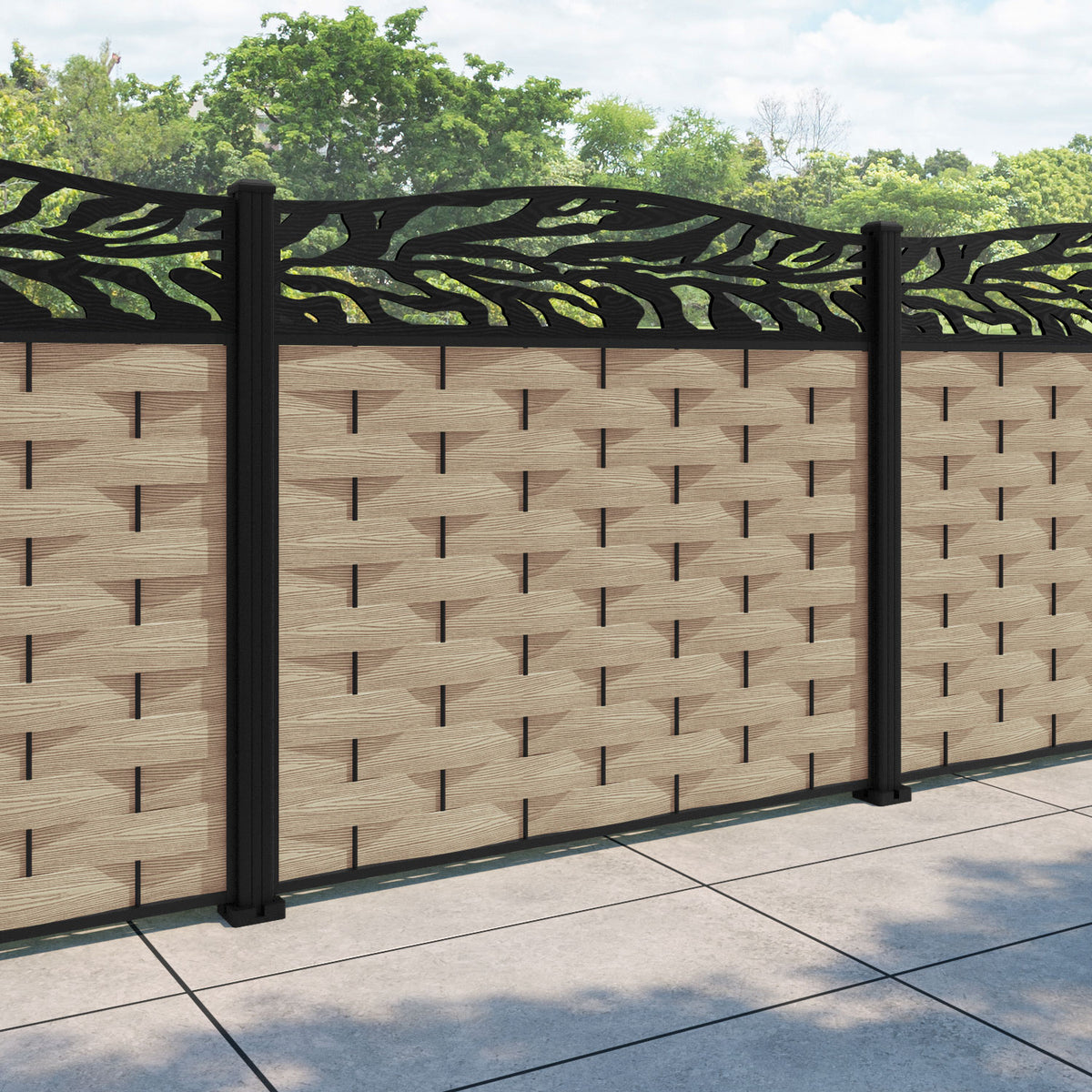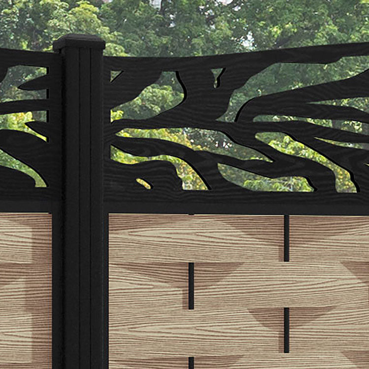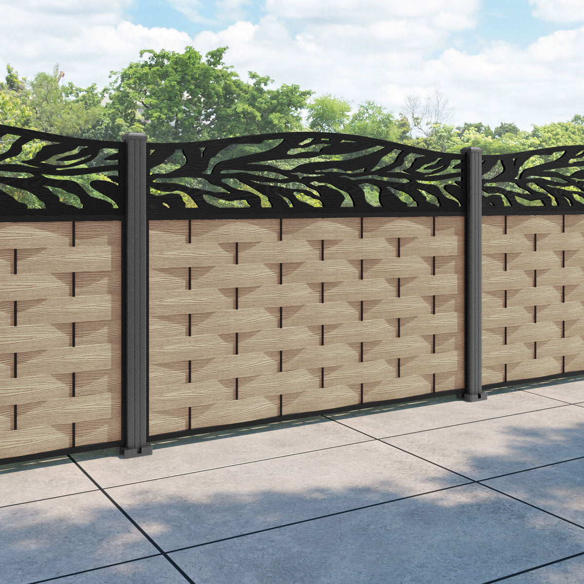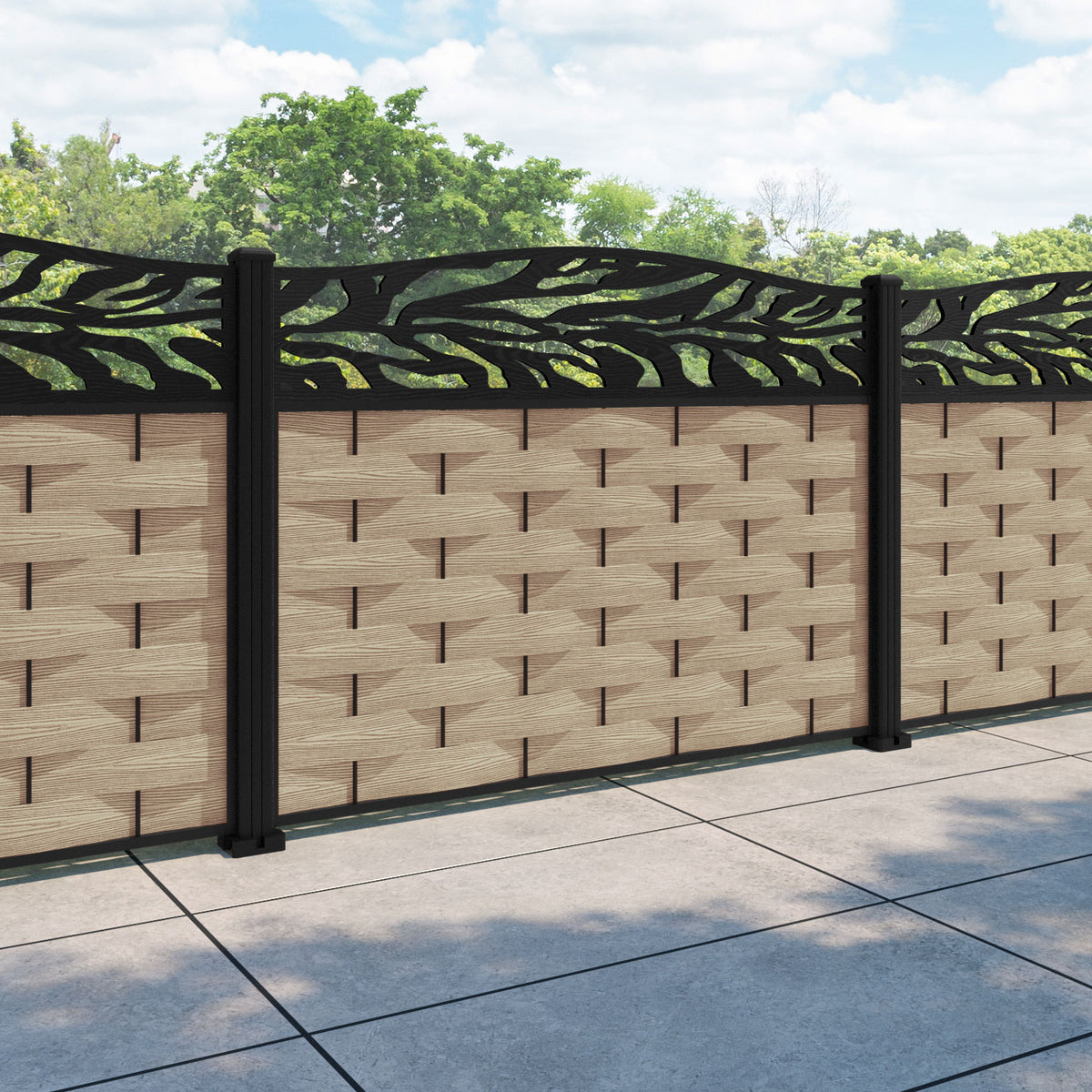 Ripple Malawi Curved Top Fence Panel Light Oak - with our aluminium posts