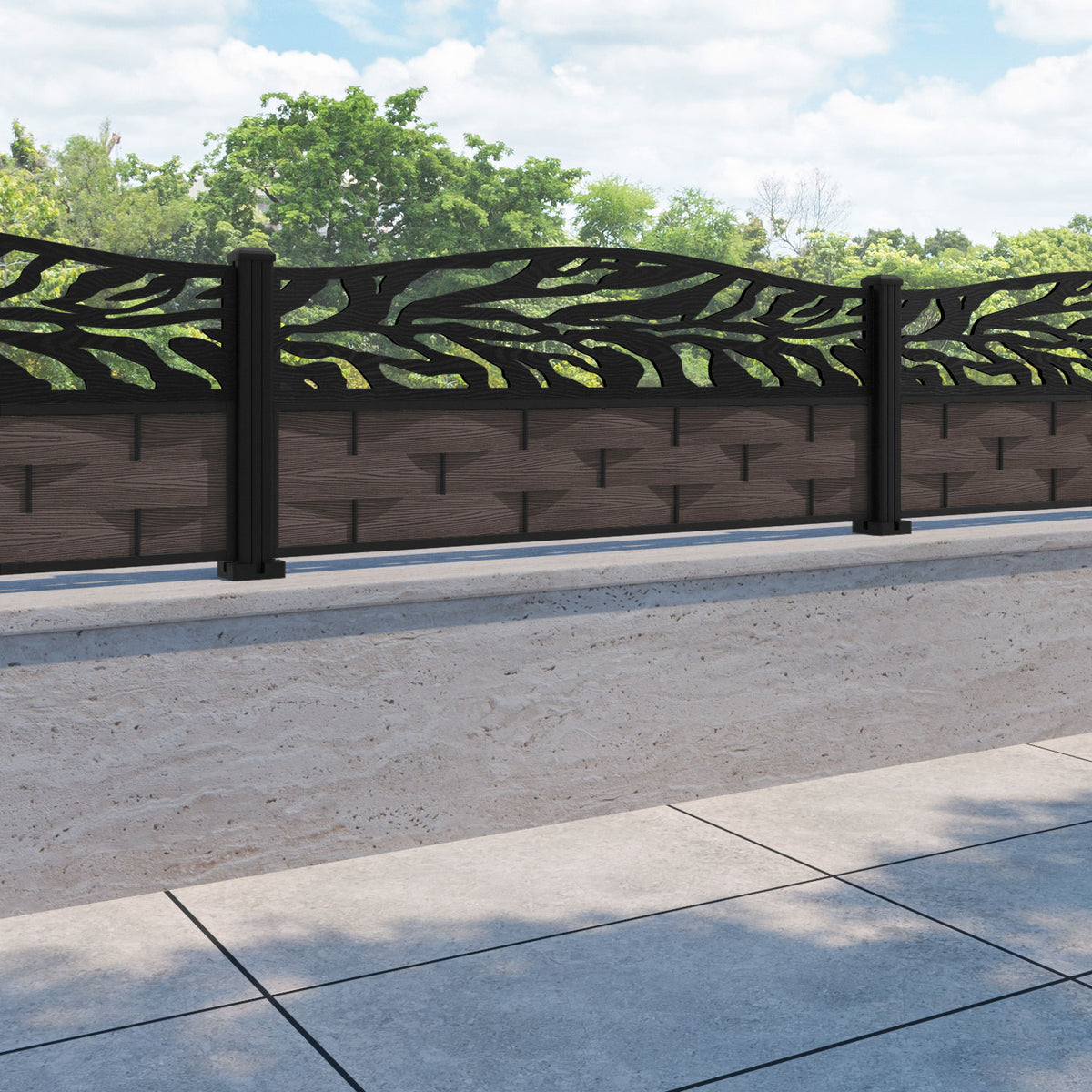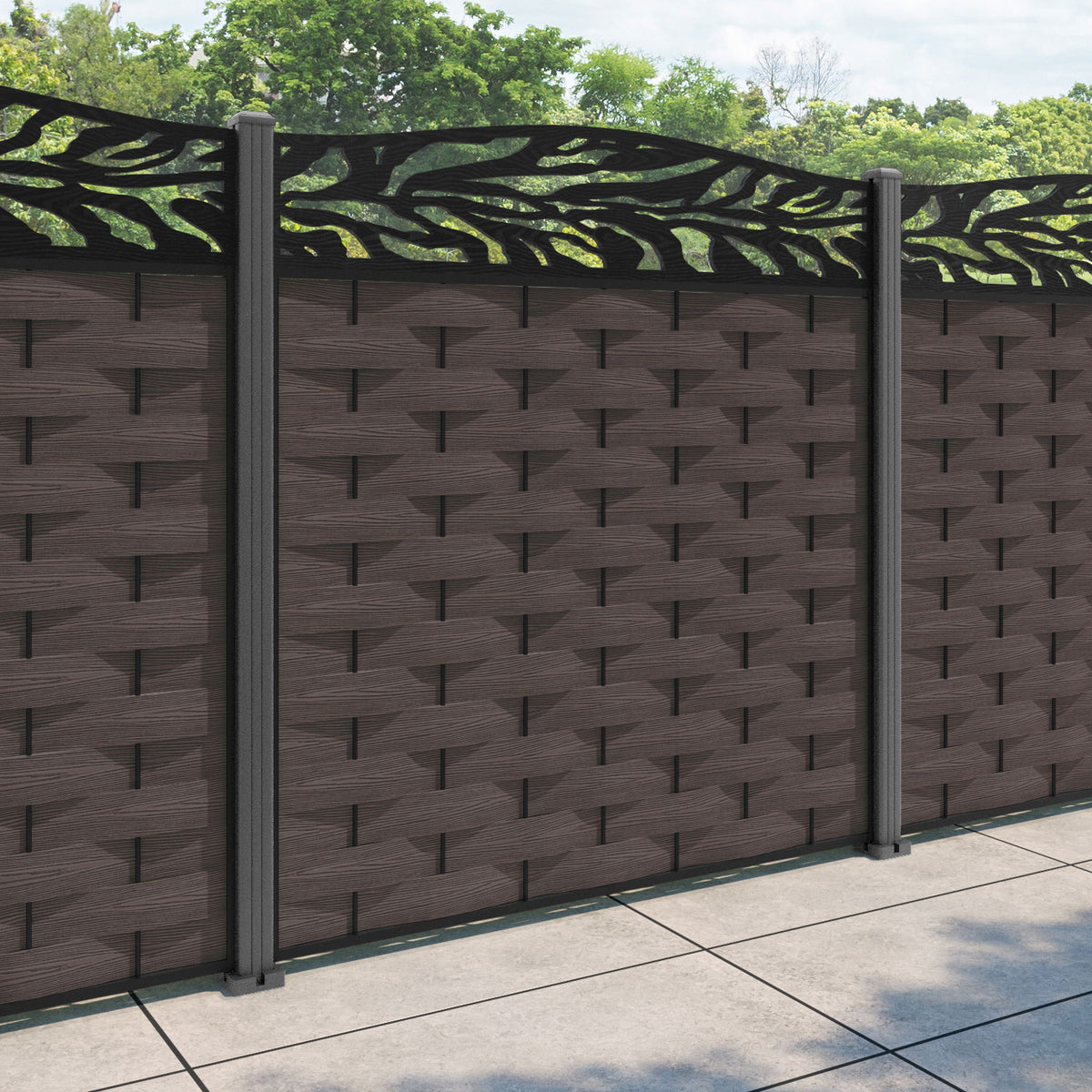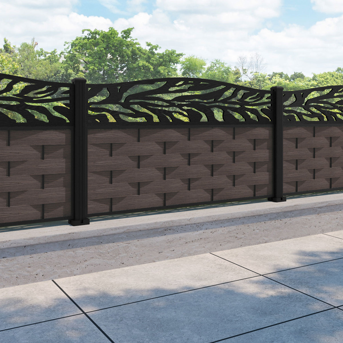 Ripple Malawi Curved Top Fence Panel Mid Brown - with our aluminium posts