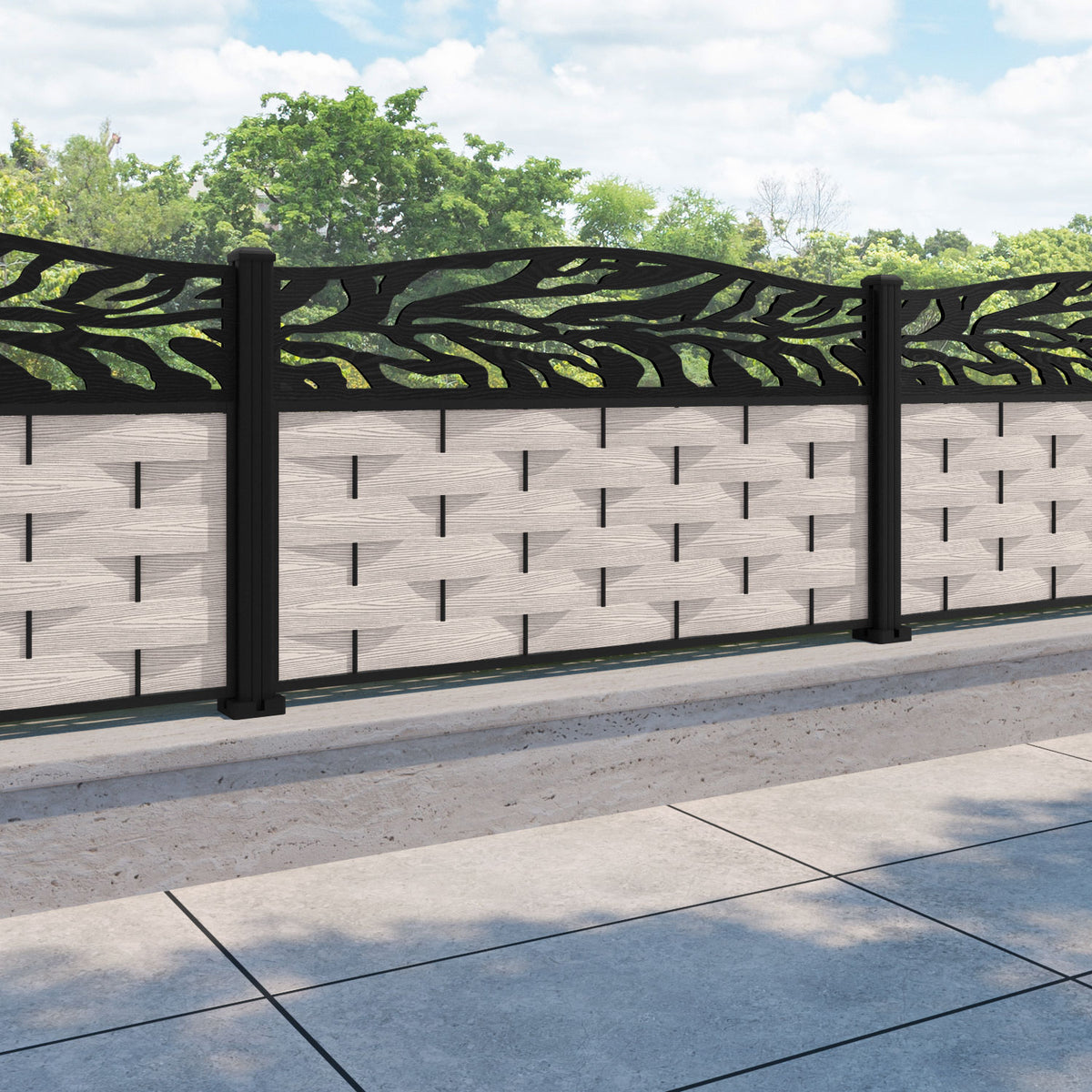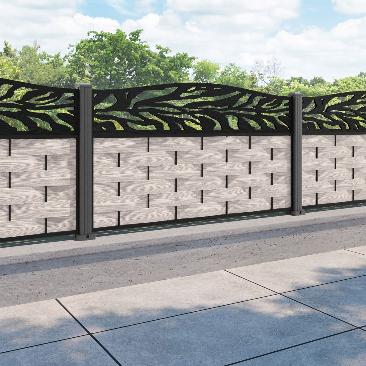 Ripple Malawi Curved Top Fence Panel Mid Stone - with our aluminium posts