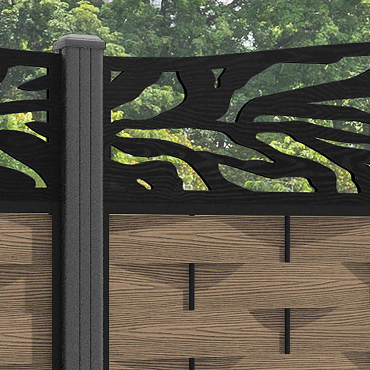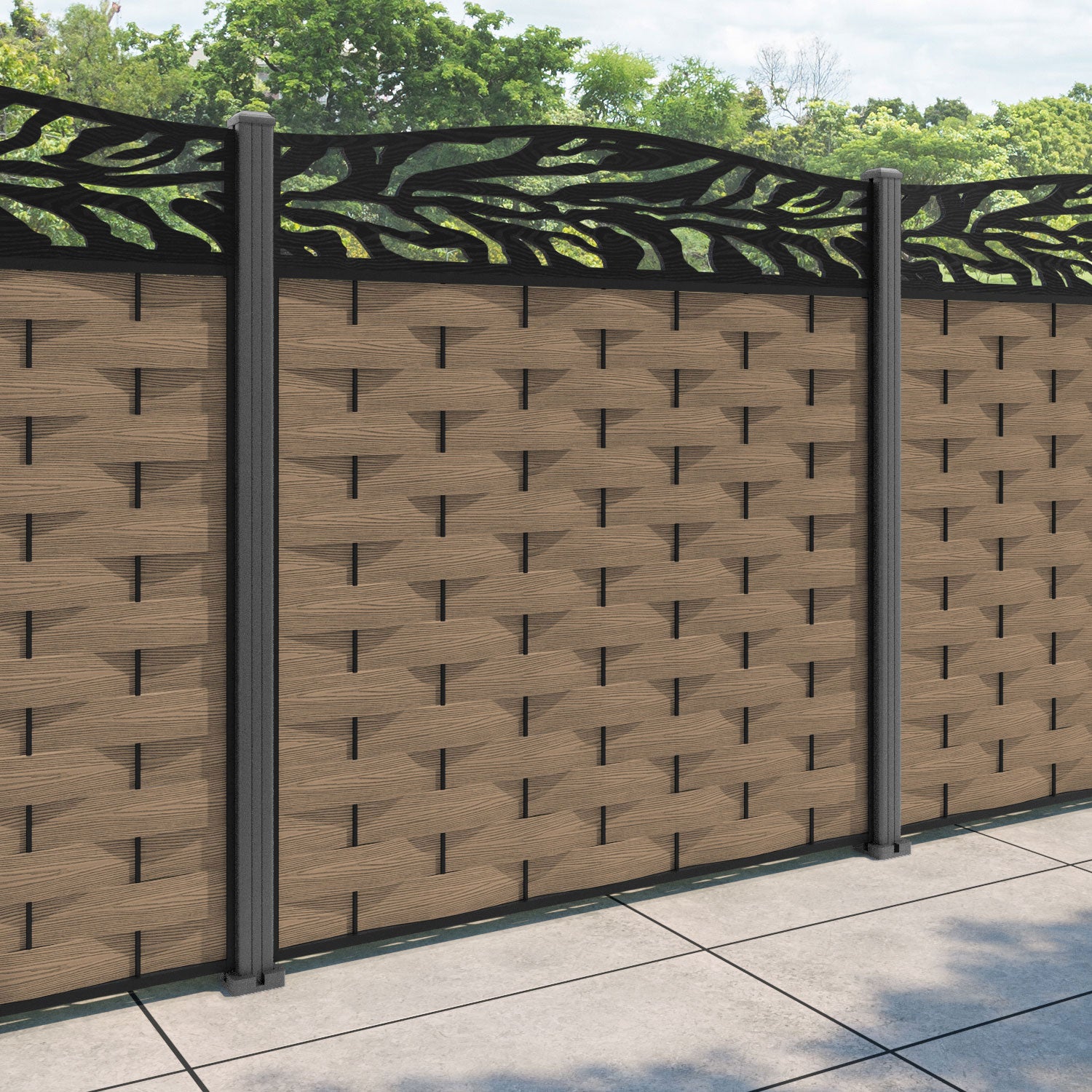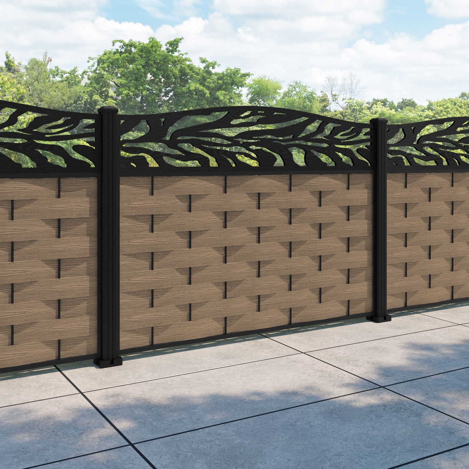 Ripple Malawi Curved Top Fence Panel Teak - with our aluminium posts