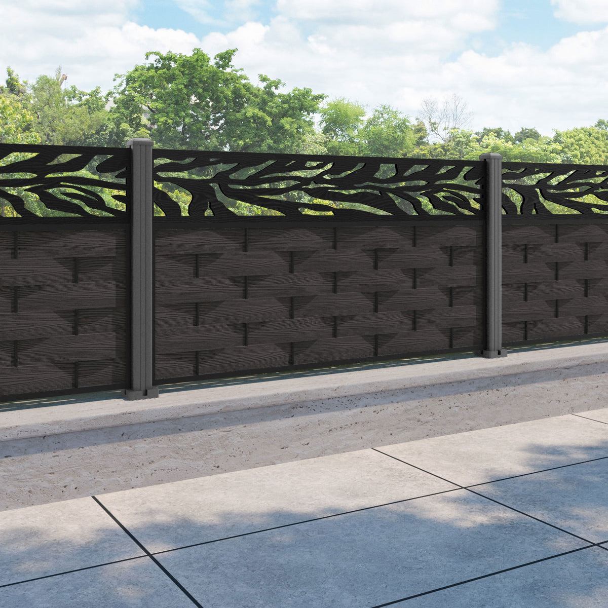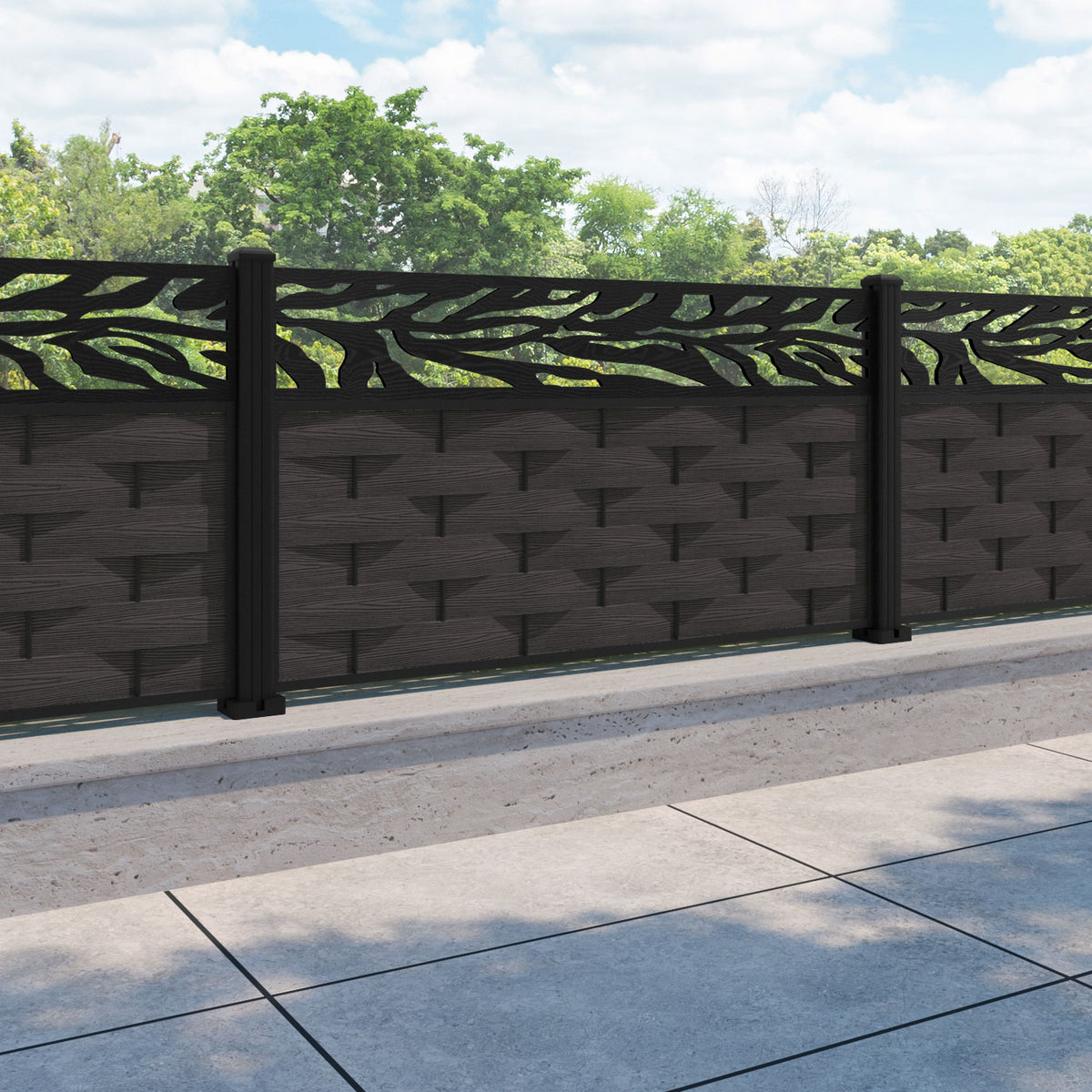 Ripple Malawi Fence Panel Dark Oak - with our aluminium posts