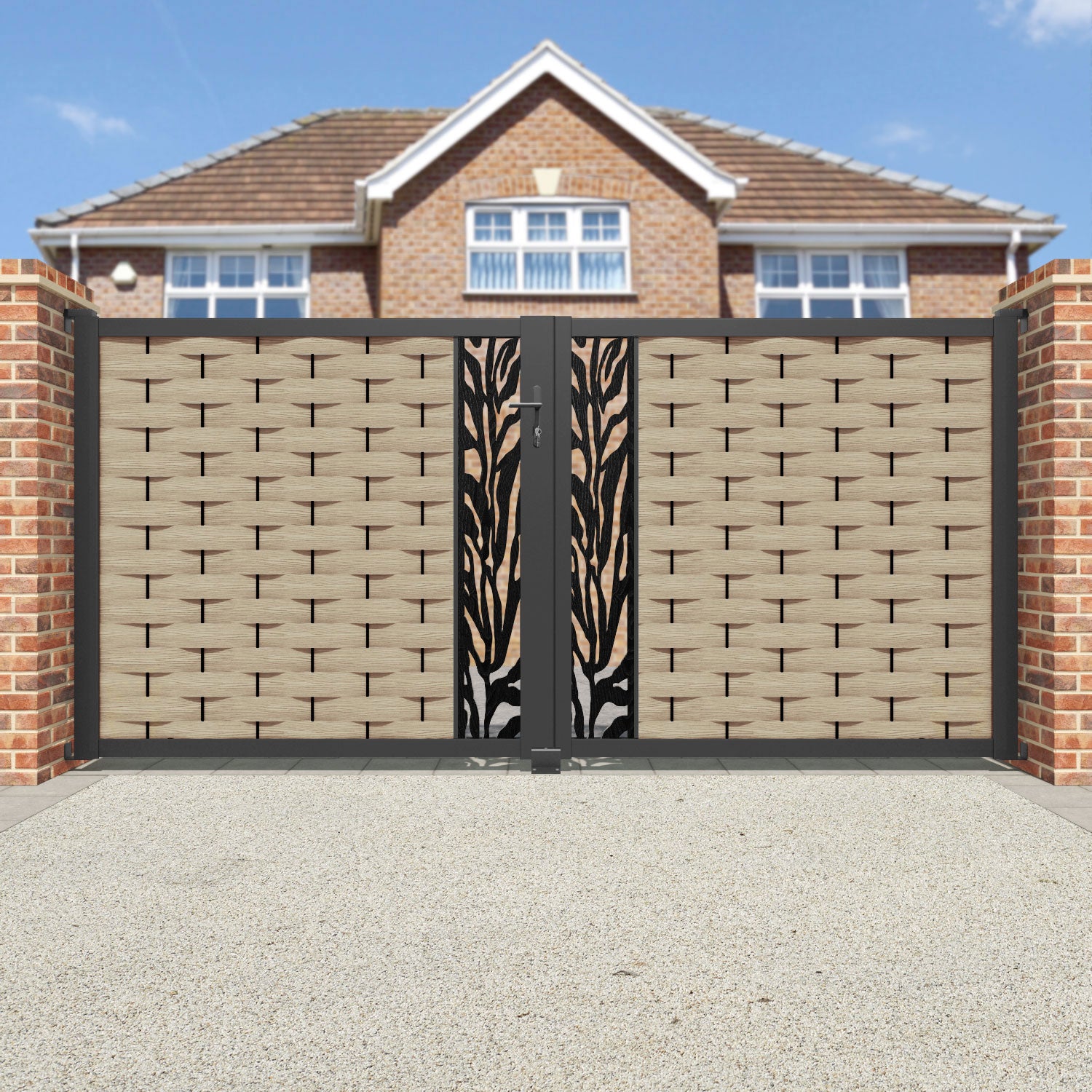 Pair your gate with our eco-friendly composite or aluminium slats for a seamless match with our fencing collections, ensuring a stylish and cohesive look.