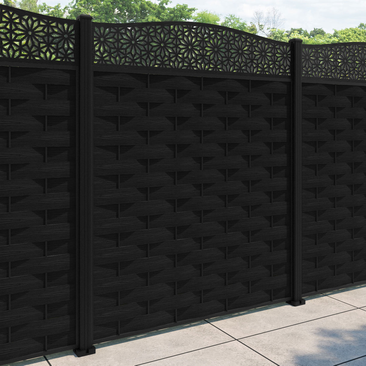 Ripple Narwa Curved Top Fence Panel Black - with our aluminium posts