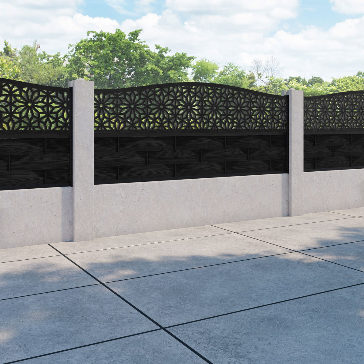 Ripple Narwa Curved Top Fence Panel Black - for existing concrete posts