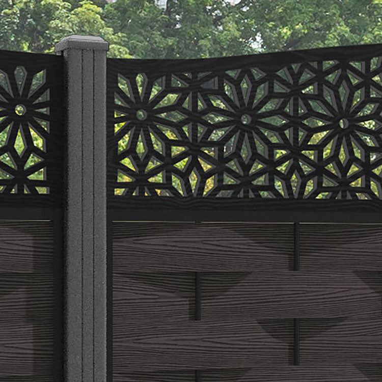Ripple Narwa Curved Top Fence Panel Dark Oak - with our aluminium posts