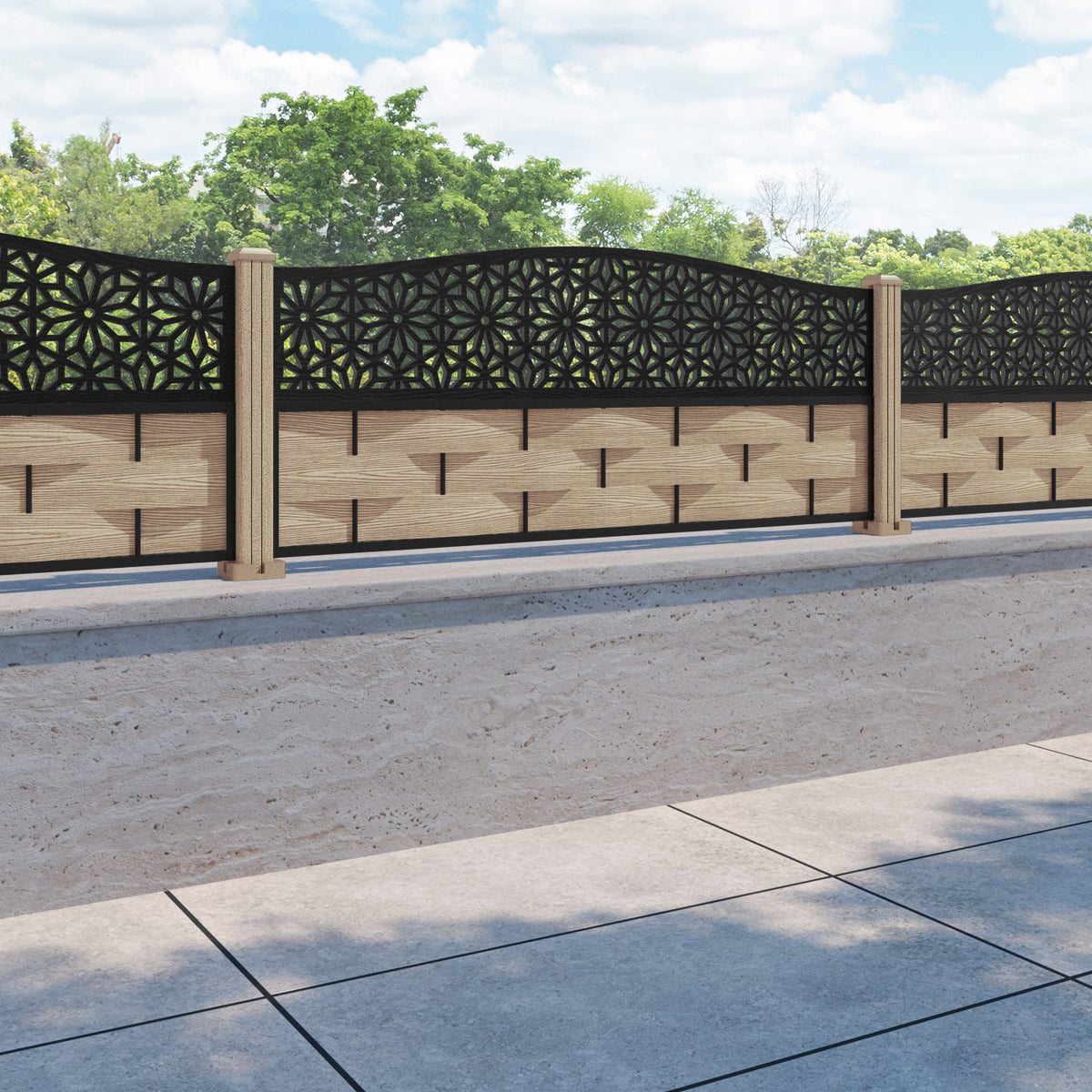 Ripple Narwa Curved Top Fence Panel Light Oak - with our composite posts
