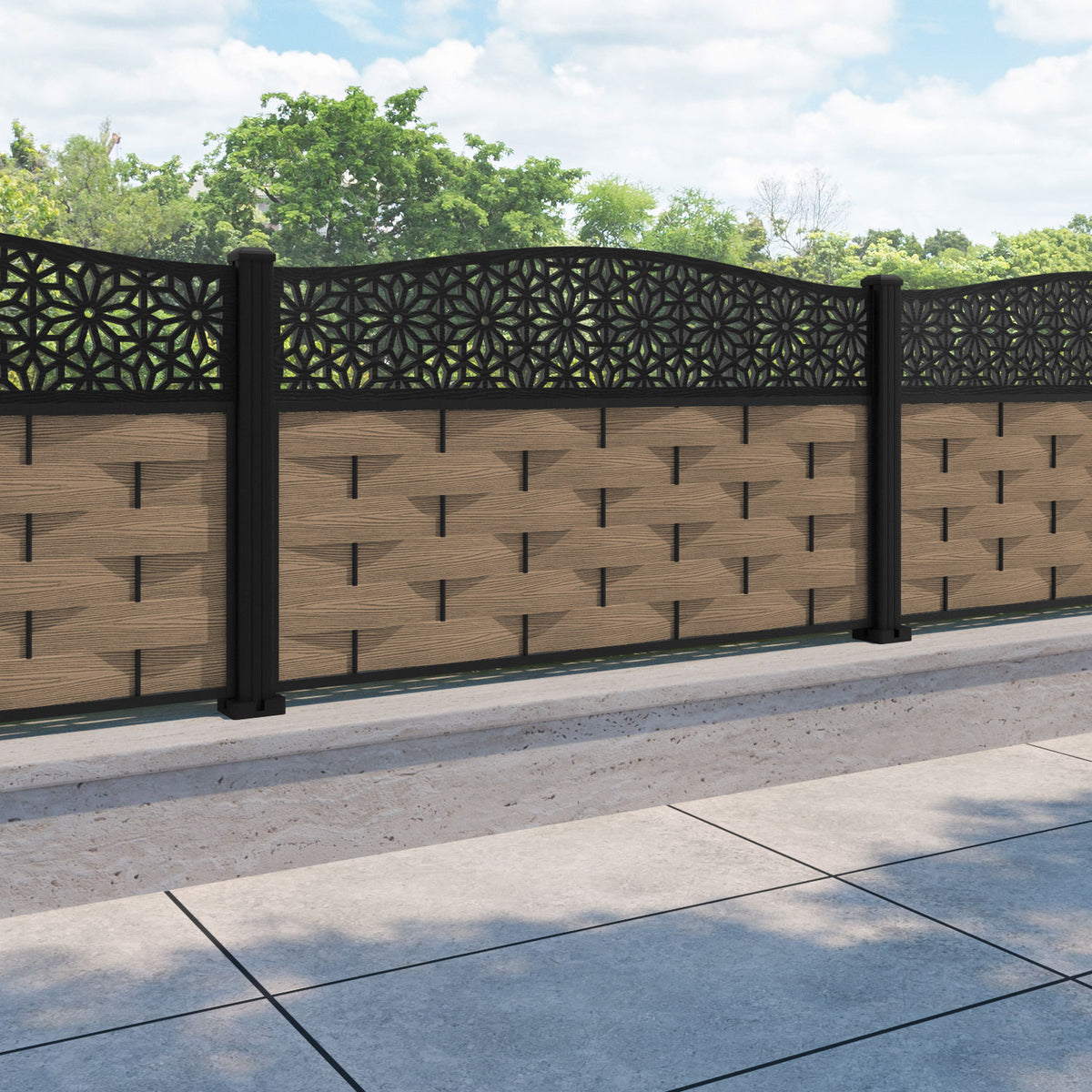 Ripple Narwa Curved Top Fence Panel Teak - with our aluminium posts