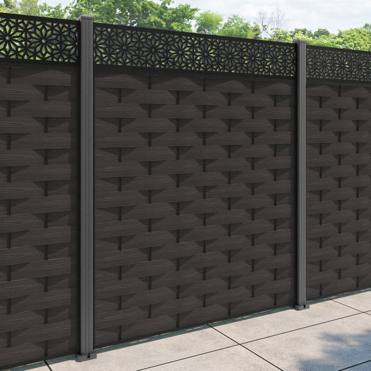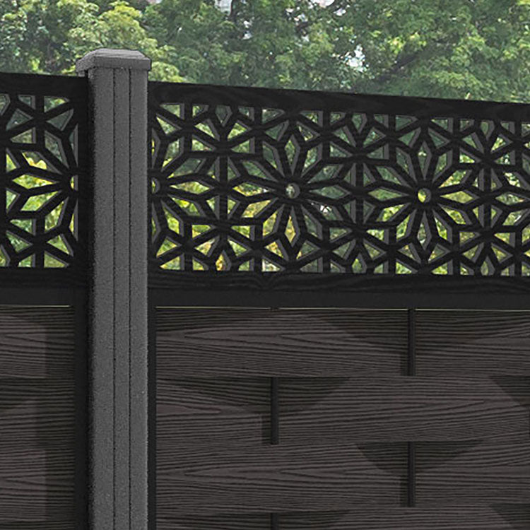 Ripple Narwa Fence Panel Dark Oak - with our aluminium posts