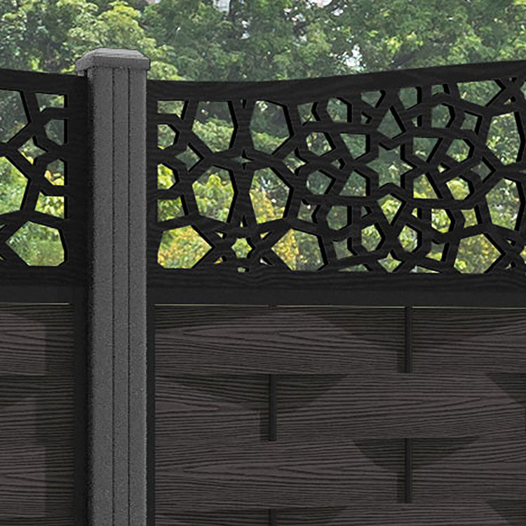 Ripple Nazira Curved Top Fence Panel Dark Oak - with our aluminium posts