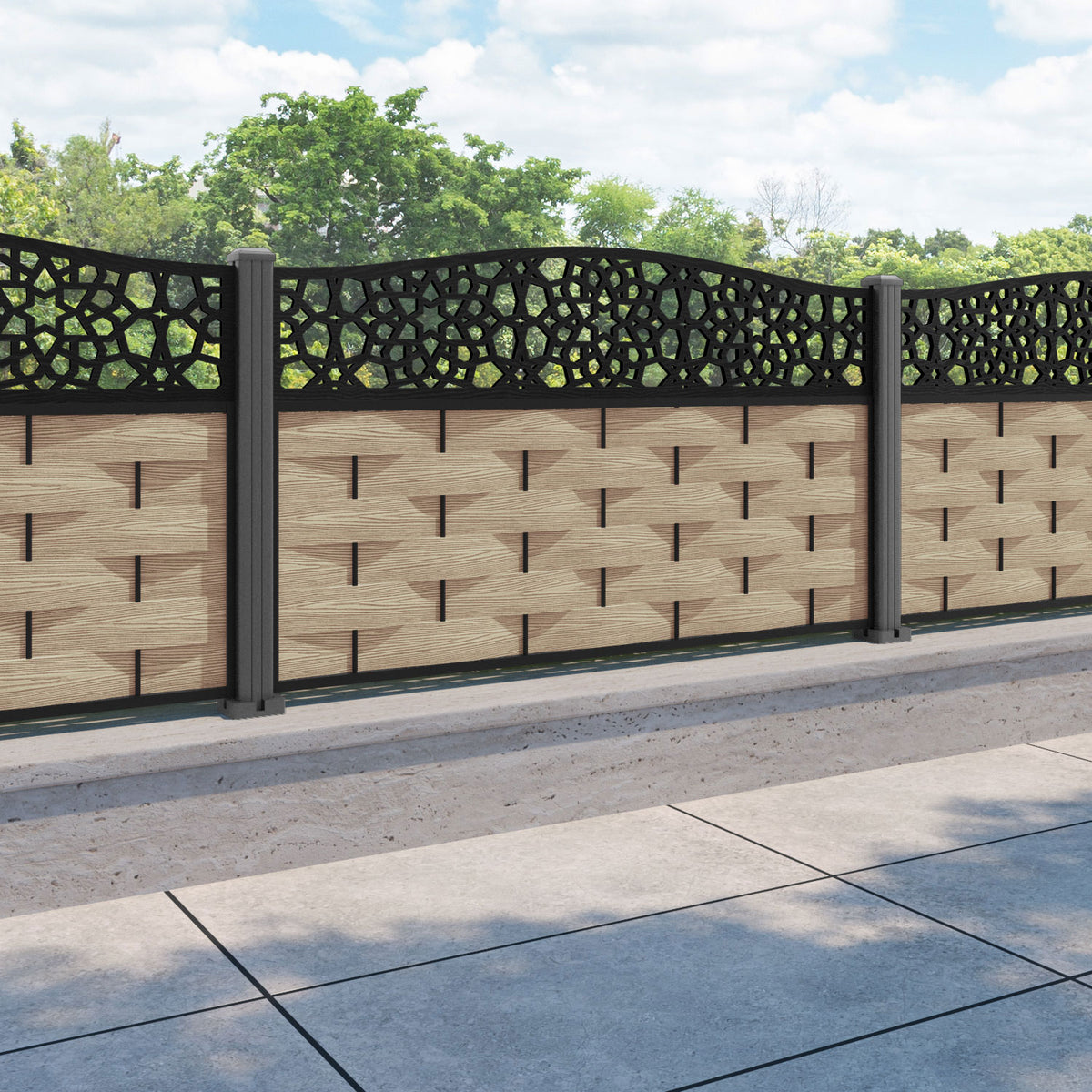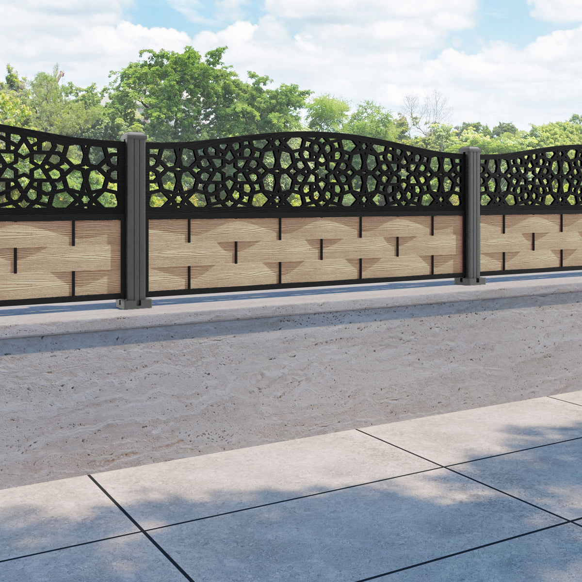 Ripple Nazira Curved Top Fence Panel Light Oak - with our aluminium posts