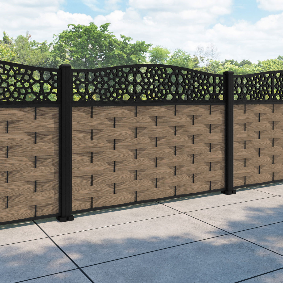 Ripple Nazira Curved Top Fence Panel Teak - with our aluminium posts